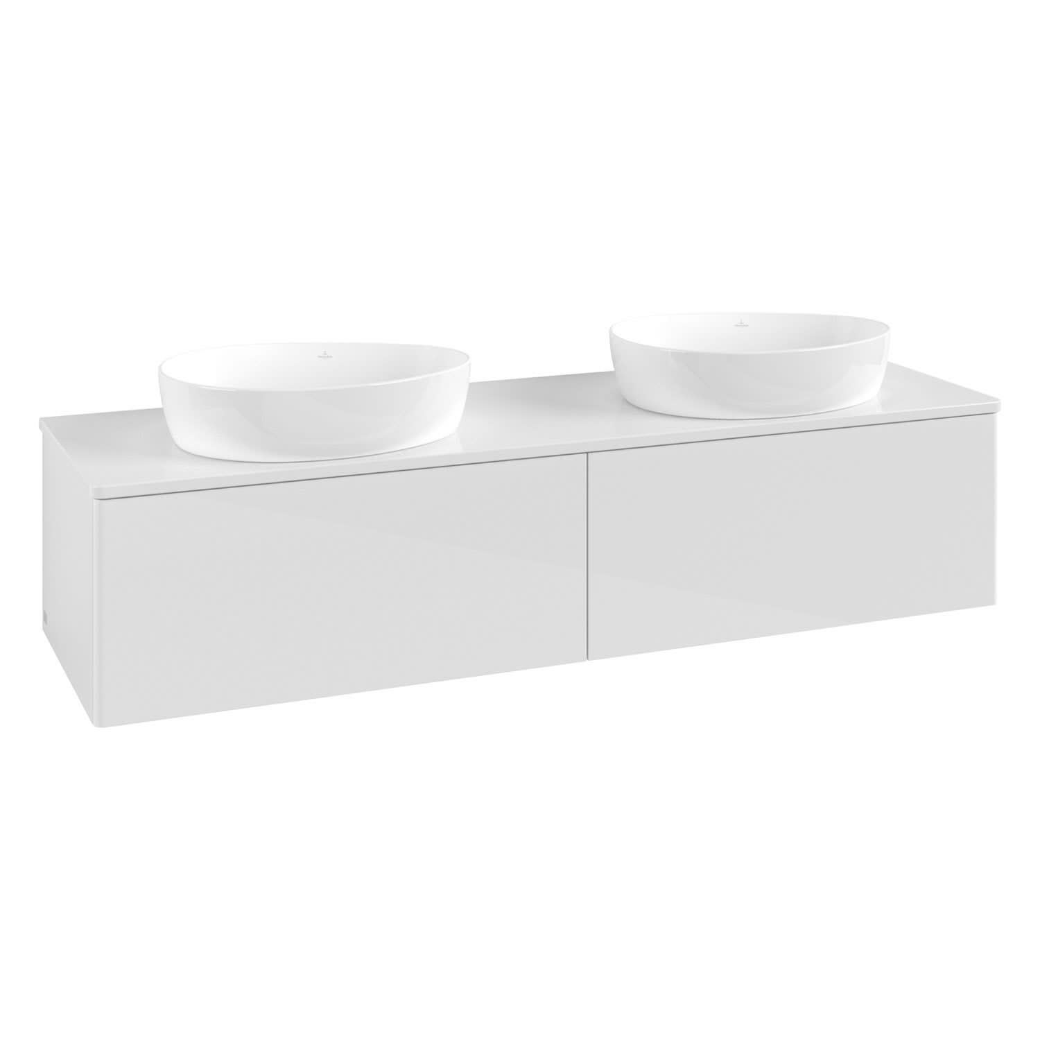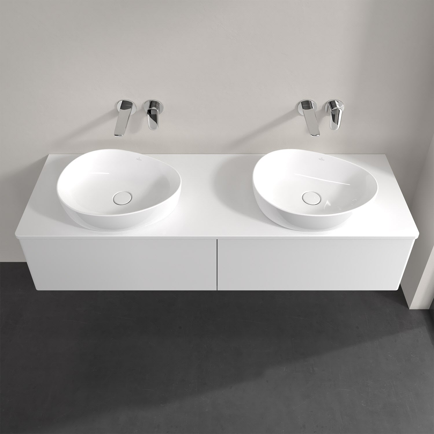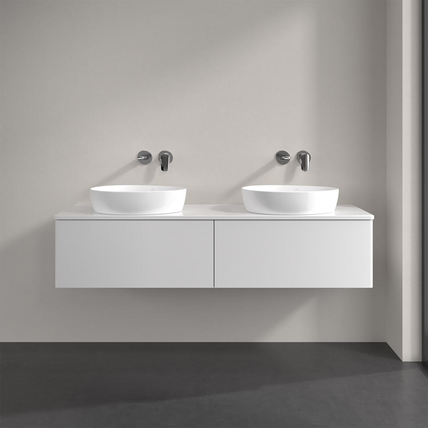 Villeroy & Boch Antao Waschbeckenunterschrank, 160 x 36 cm, 2 Auszüge mit LED-Licht, Front ohne Struktur, mit Hahnloch, für Waschtisch links und recht