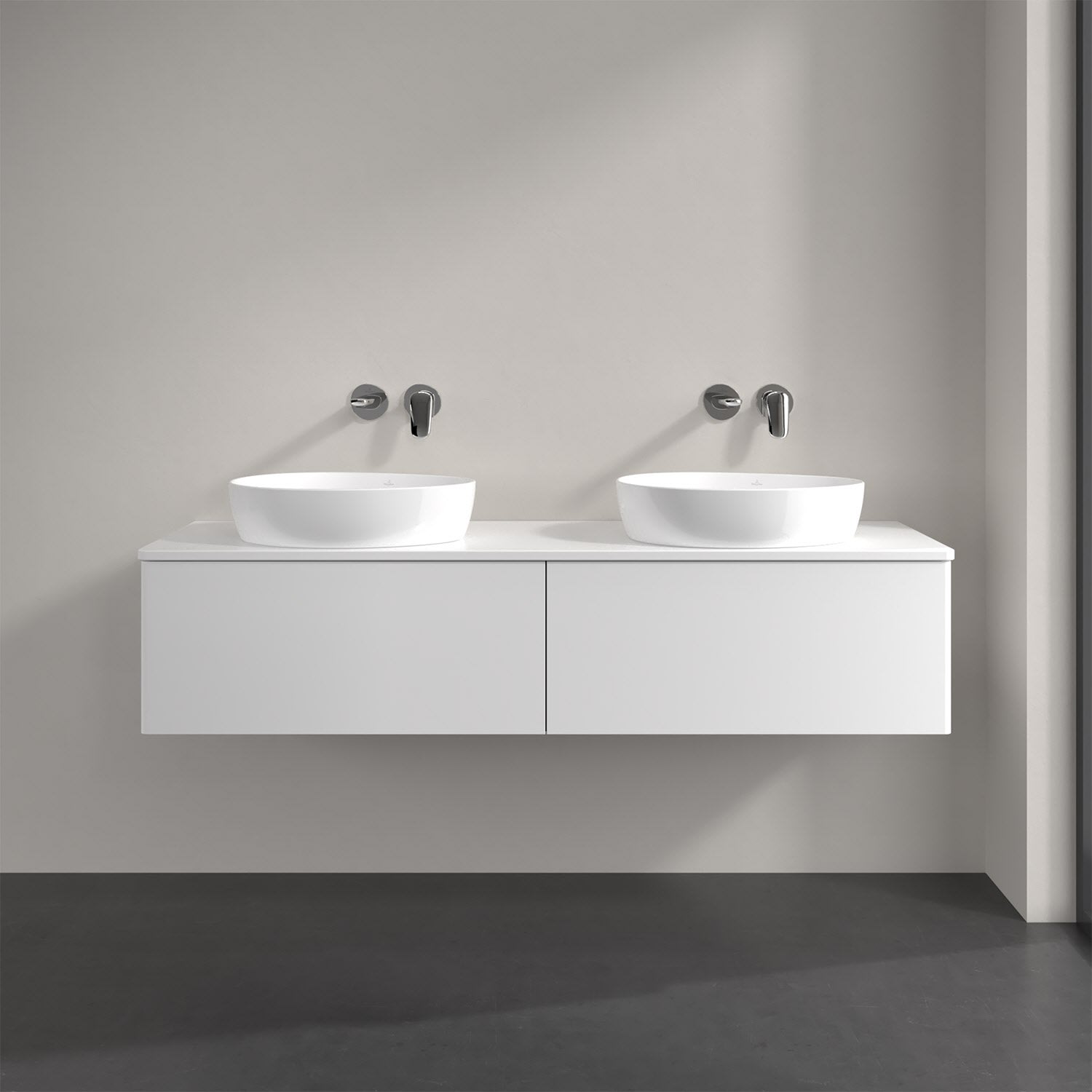 Villeroy & Boch Antao Waschbeckenunterschrank, 160 x 36 cm, 2 Auszüge mit LED-Licht, Front ohne Struktur, mit Hahnloch, für Waschtisch links und recht
