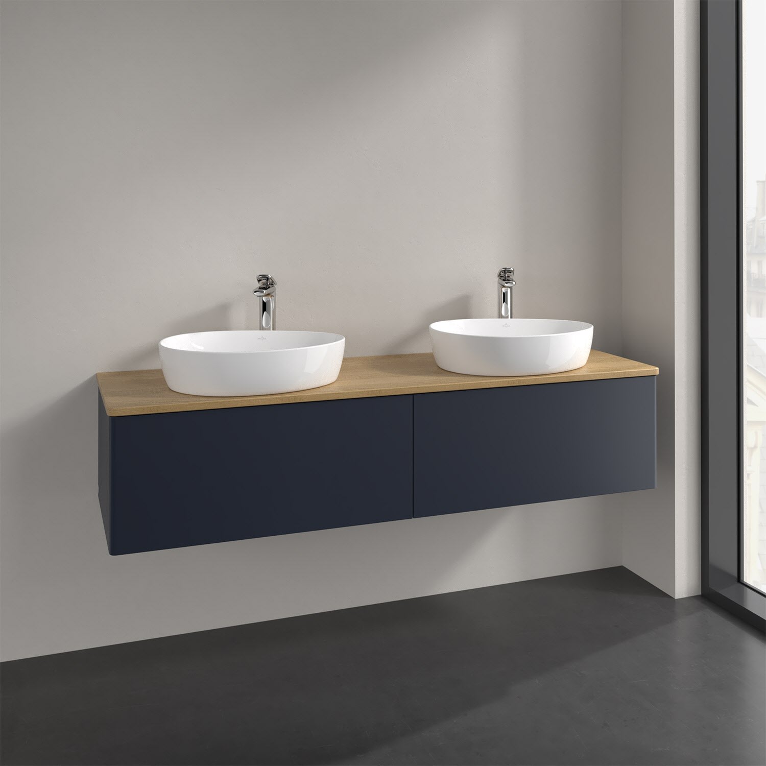 Der wandhängende Antao Waschtischunterschrank für zwei Aufsatzwaschtische bietet mit seinen beiden extra hohen Auszügen und seiner erstaunlichen Größe viel Platz zum Verstauen von Utensilien im Badezimmer. Inspiriert von der Natur überzeugt der Unterschrank auch optisch mit sanfter Formsprache und abgerundete Kanten. Die grifflosen Auszüge sind mit der Push-to-Open Funktion ausgestattet und verfügen über einen Antirutschboden, damit Utensilien sicher verstaut werden können. Den Überblick behält man dank der warmweißen Auszugsbeleuchtung, die sich automatisch beim Öffnen einschaltet. Mit seiner Vollauszug- und Selbsteinzug-Funktion ist der Schrank praktisch und leicht zu bedienen. Qualität von Villeroy & Boch! Für eine besonders leichte Pflege sorgt die mehrschichtig deckend lackierte Oberfläche. Bei der Ausführung in Massivholz wird dank des verarbeiteten Massivholzes jedes Möbel zu einem Unikat, das sich durch das lebendige Naturmaterial durch seine einzigartige Struktur und Maserung auszeichnet.