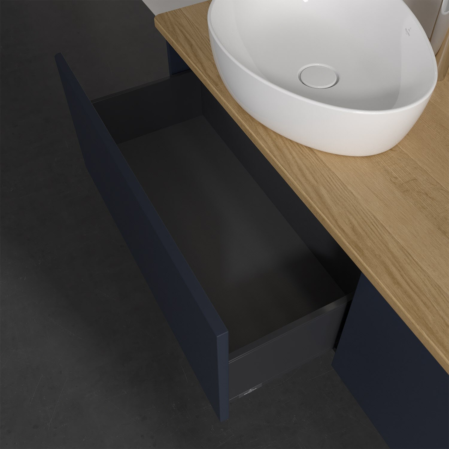 Für diesen Waschbeckenunterschrank stehen Ihnen Aufsatzwaschtische aus verschiedenen Serien zur Verfügung (siehe "Passliste" unter Downloads). Ein ausgewähltes Beispiel finden Sie im Zubehör. Den Waschtisch bitte separat mitbestellen.