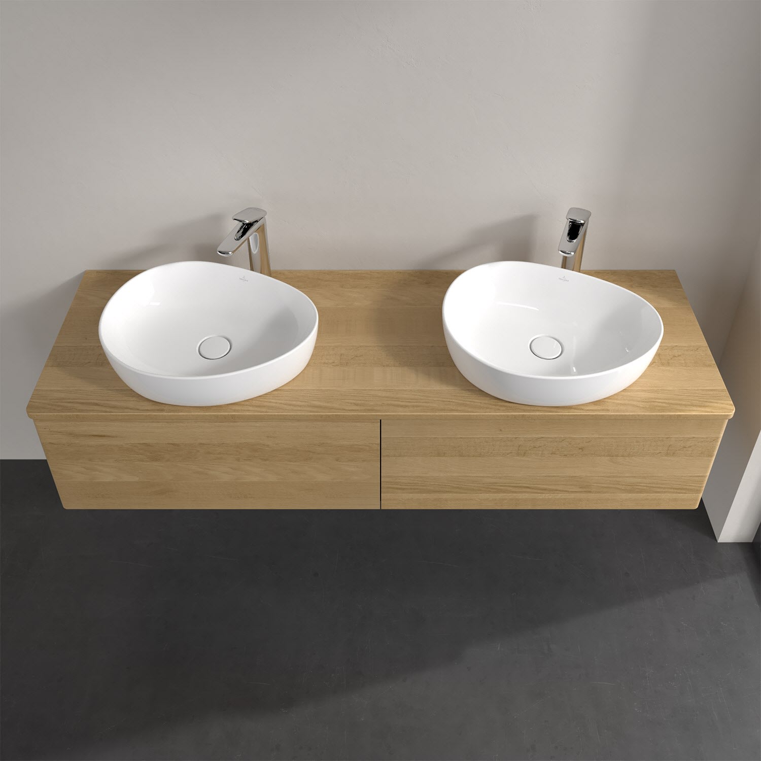 Villeroy & Boch Antao Waschbeckenunterschrank, 160 x 36 cm, 2 Auszüge mit LED-Licht, Front ohne Struktur, mit Hahnloch, für Waschtisch links und recht