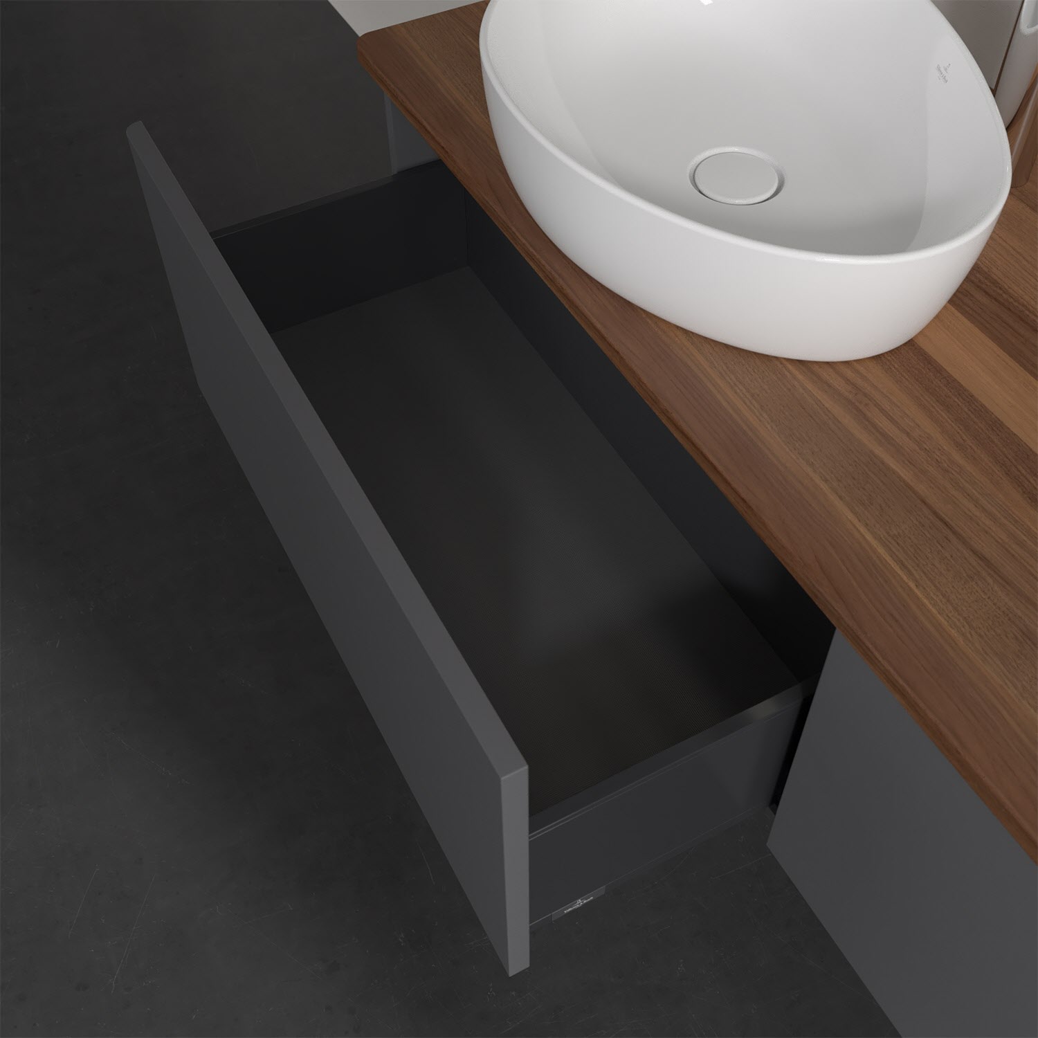 Für diesen Waschbeckenunterschrank stehen Ihnen Aufsatzwaschtische aus verschiedenen Serien zur Verfügung (siehe "Passliste" unter Downloads). Ein ausgewähltes Beispiel finden Sie im Zubehör. Den Waschtisch bitte separat mitbestellen.