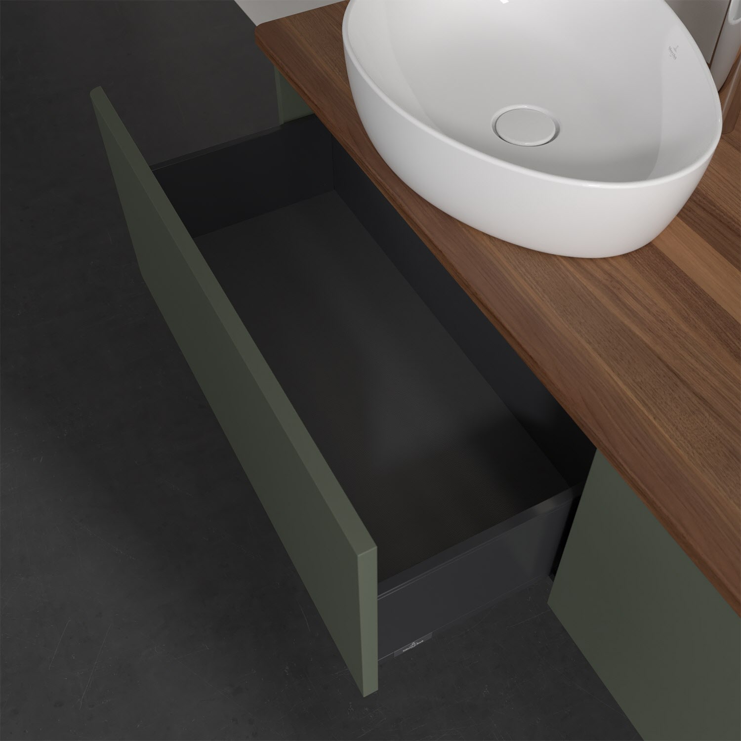 Villeroy & Boch Antao Waschbeckenunterschrank, 160 x 36 cm, 2 Auszüge mit LED-Licht, Front ohne Struktur, mit Hahnloch, für Waschtisch links und recht