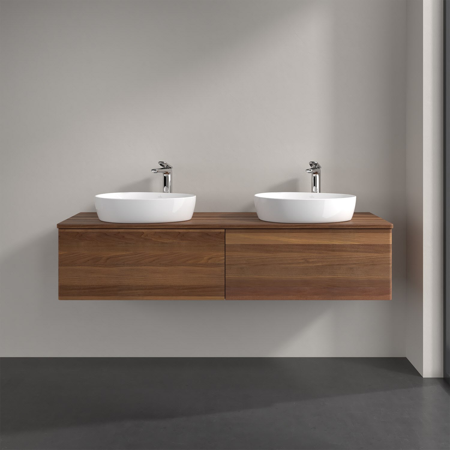 Villeroy & Boch Antao Waschbeckenunterschrank, 160 x 36 cm, 2 Auszüge mit LED-Licht, Front ohne Struktur, mit Hahnloch, für Waschtisch links und recht