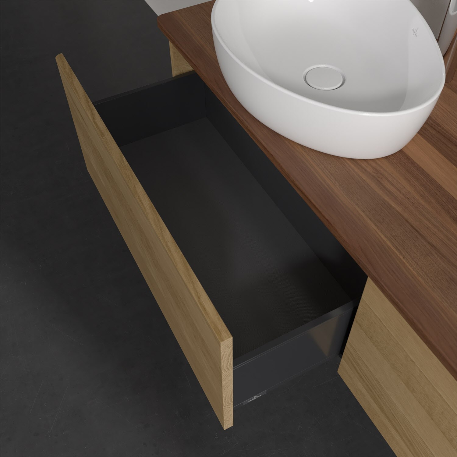 Villeroy & Boch Antao Waschbeckenunterschrank, 160 x 36 cm, 2 Auszüge mit LED-Licht, Front ohne Struktur, mit Hahnloch, für Waschtisch links und recht