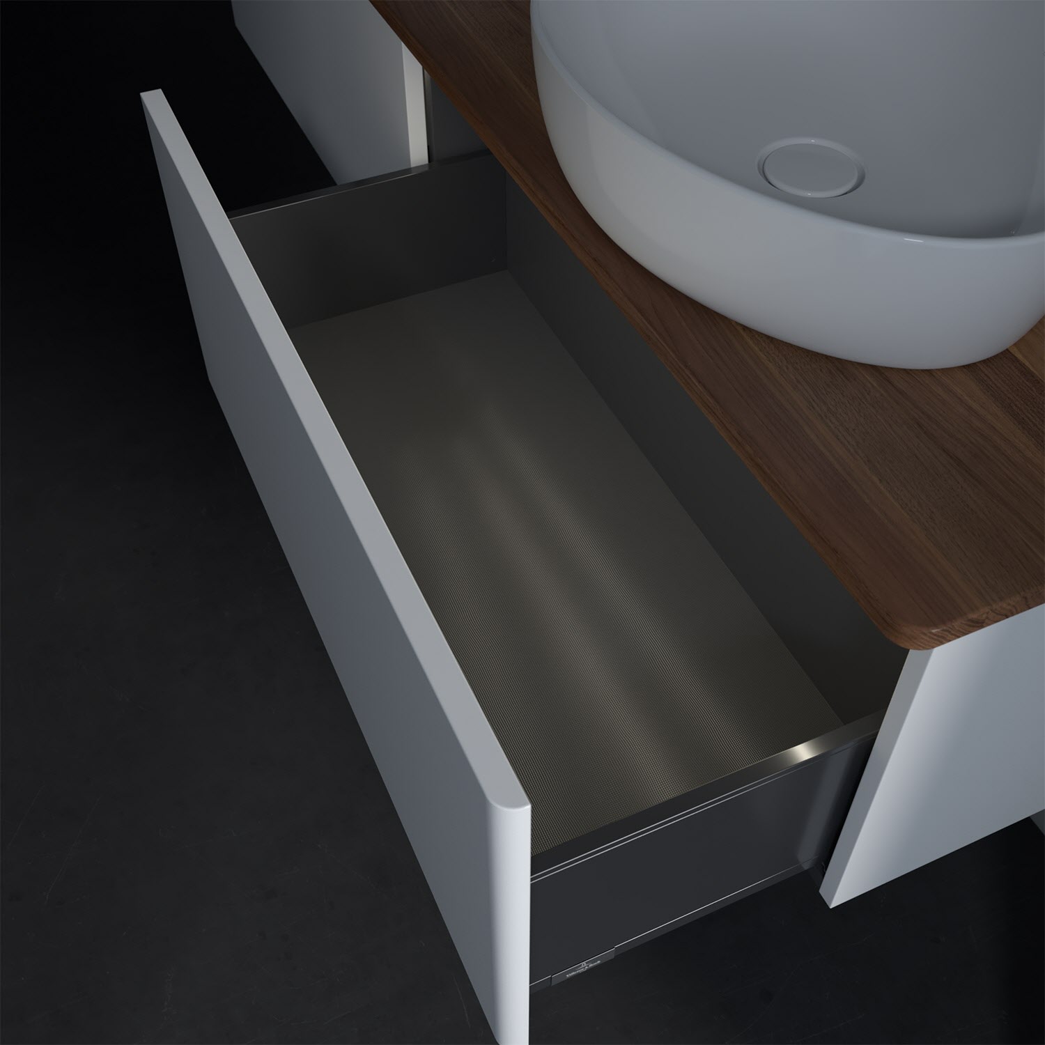 - kein Umfallen oder Verrutschen von Pflegeprodukten in den Schubladen dank rutschhemmendem Boden