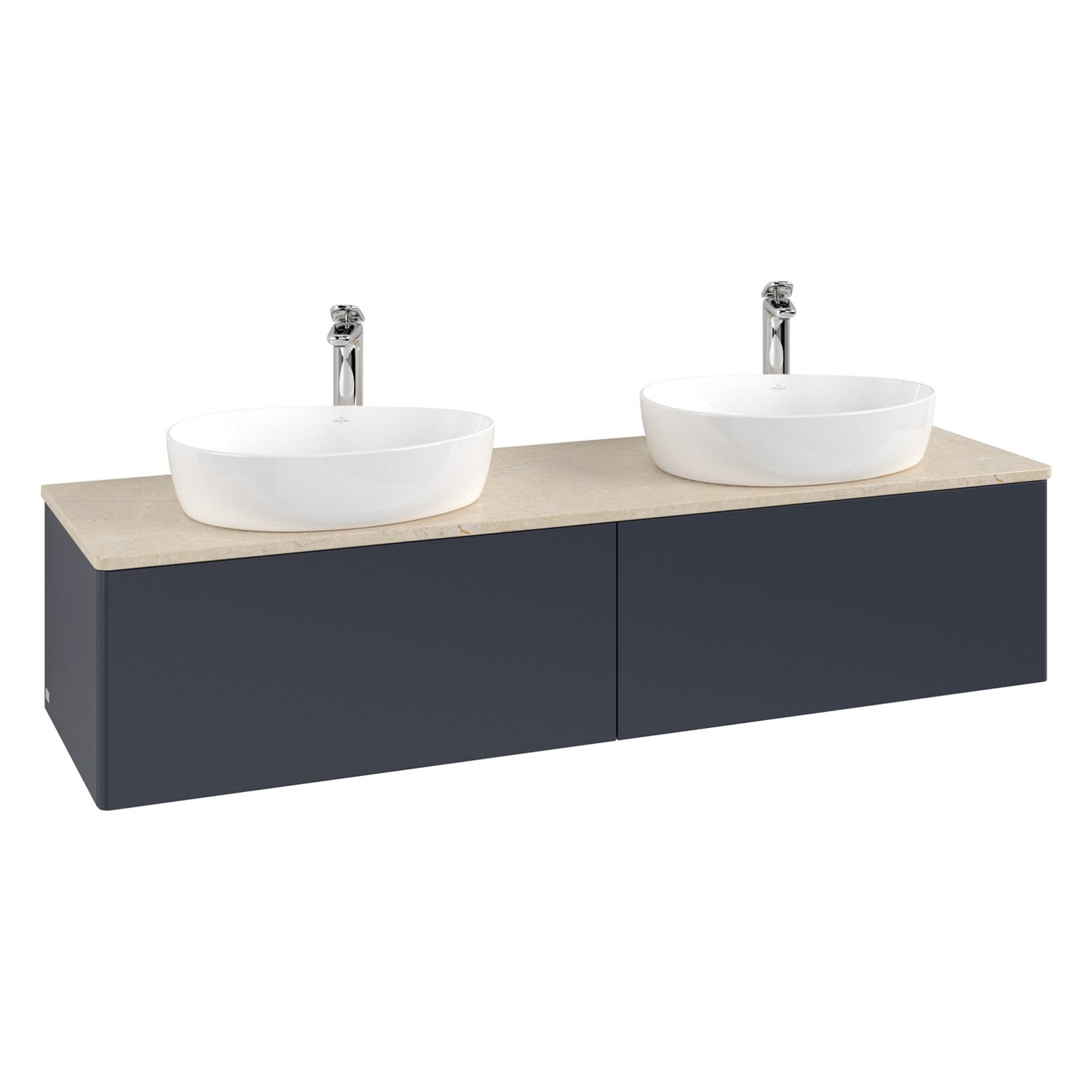 Villeroy & Boch Antao Waschbeckenunterschrank, 160 x 36 cm, 2 Auszüge mit LED-Licht, Front ohne Struktur, mit Hahnloch, für Waschtisch links und recht