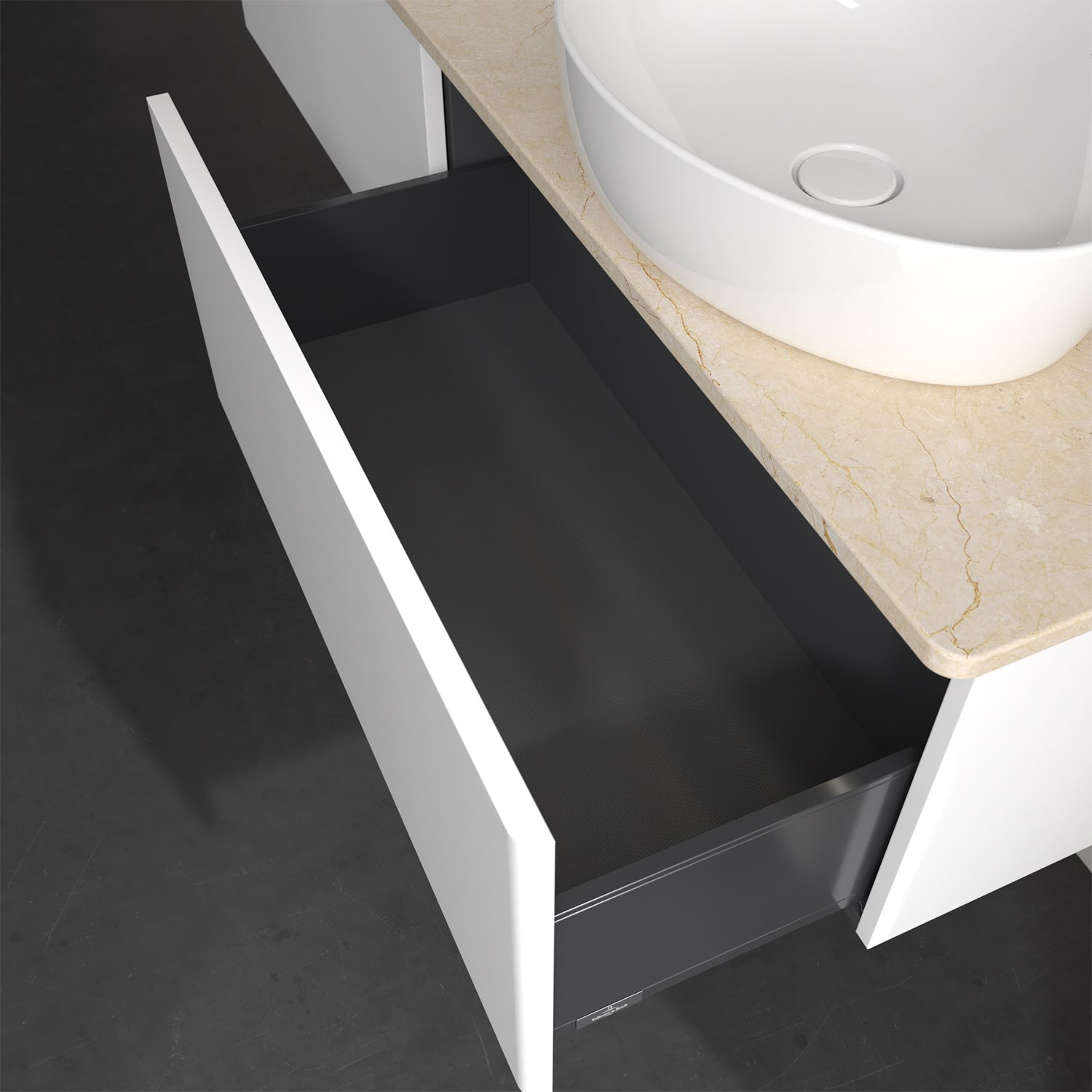 - kein Umfallen oder Verrutschen von Pflegeprodukten in den Schubladen dank rutschhemmendem Boden