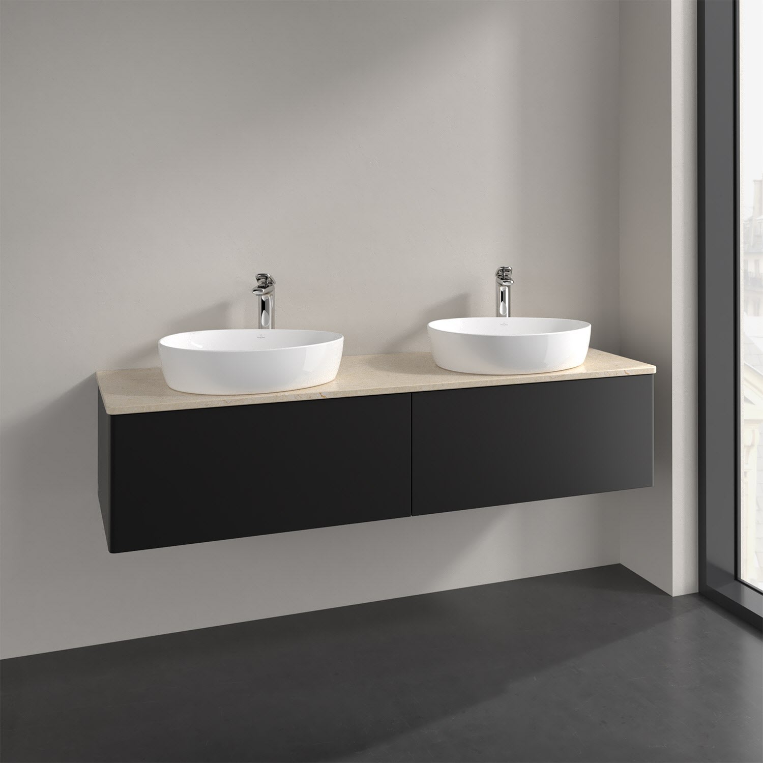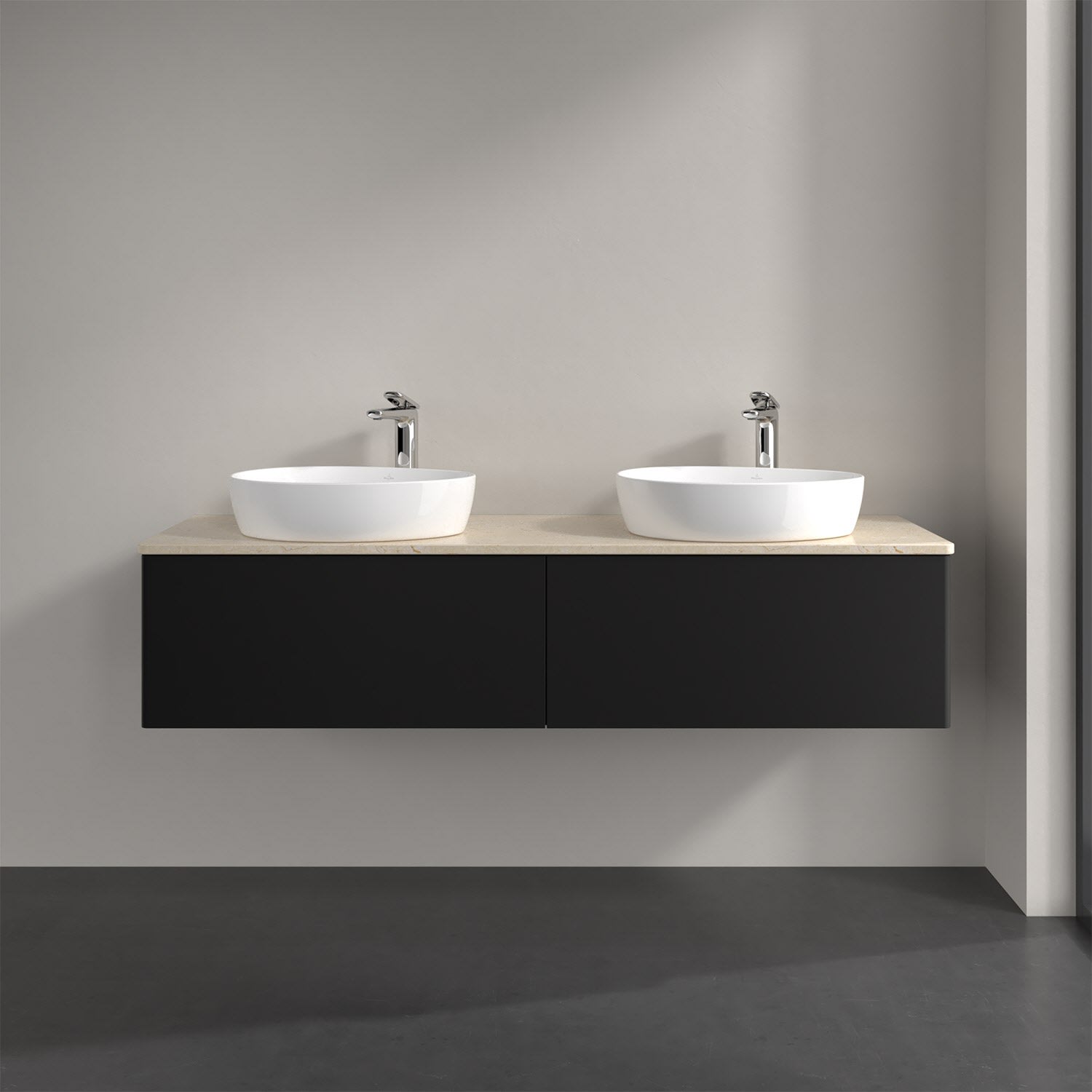 Villeroy & Boch Antao Waschbeckenunterschrank, 160 x 36 cm, 2 Auszüge mit LED-Licht, Front ohne Struktur, mit Hahnloch, für Waschtisch links und recht
