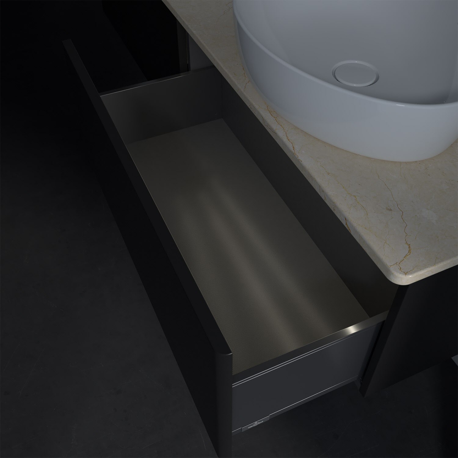 - kein Umfallen oder Verrutschen von Pflegeprodukten in den Schubladen dank rutschhemmendem Boden