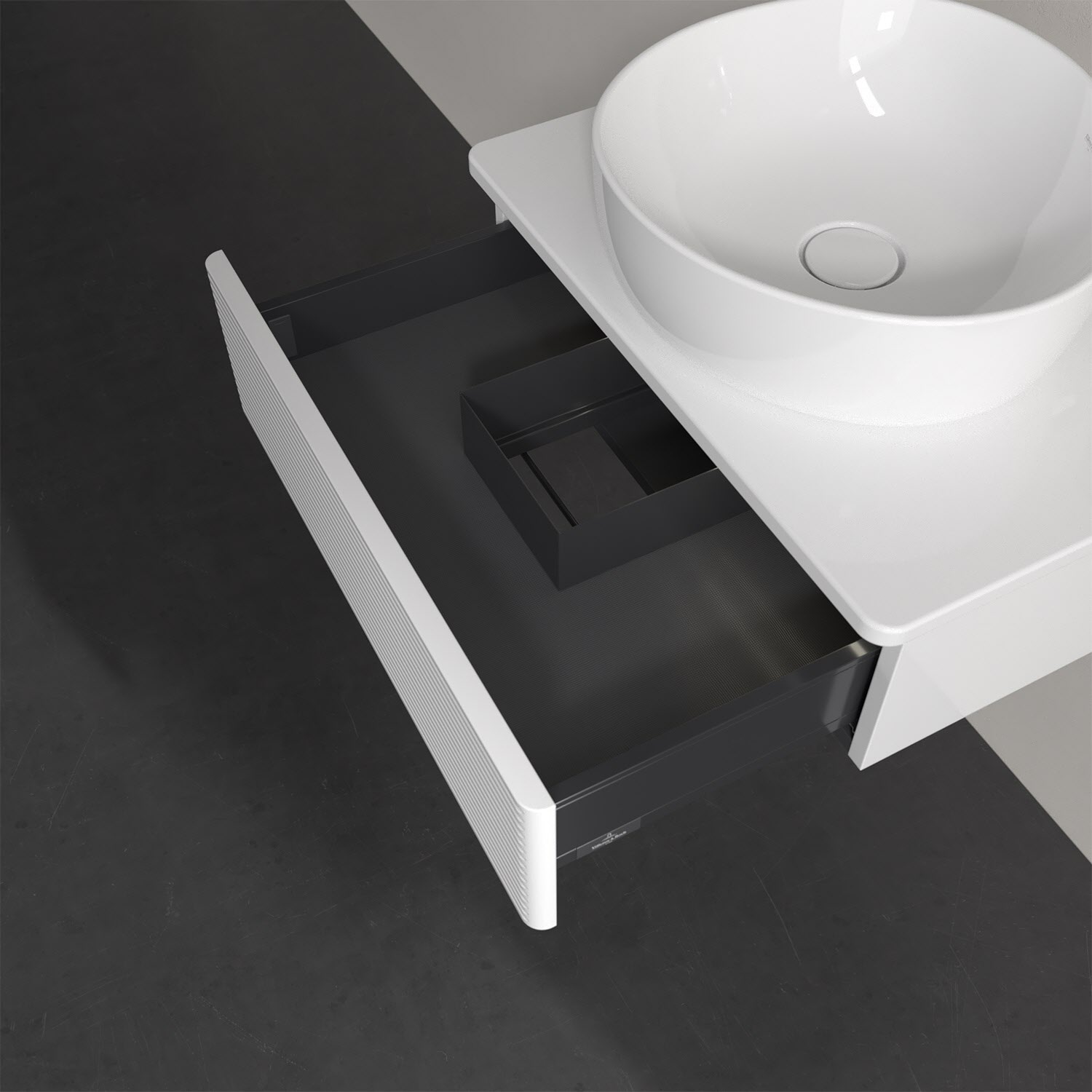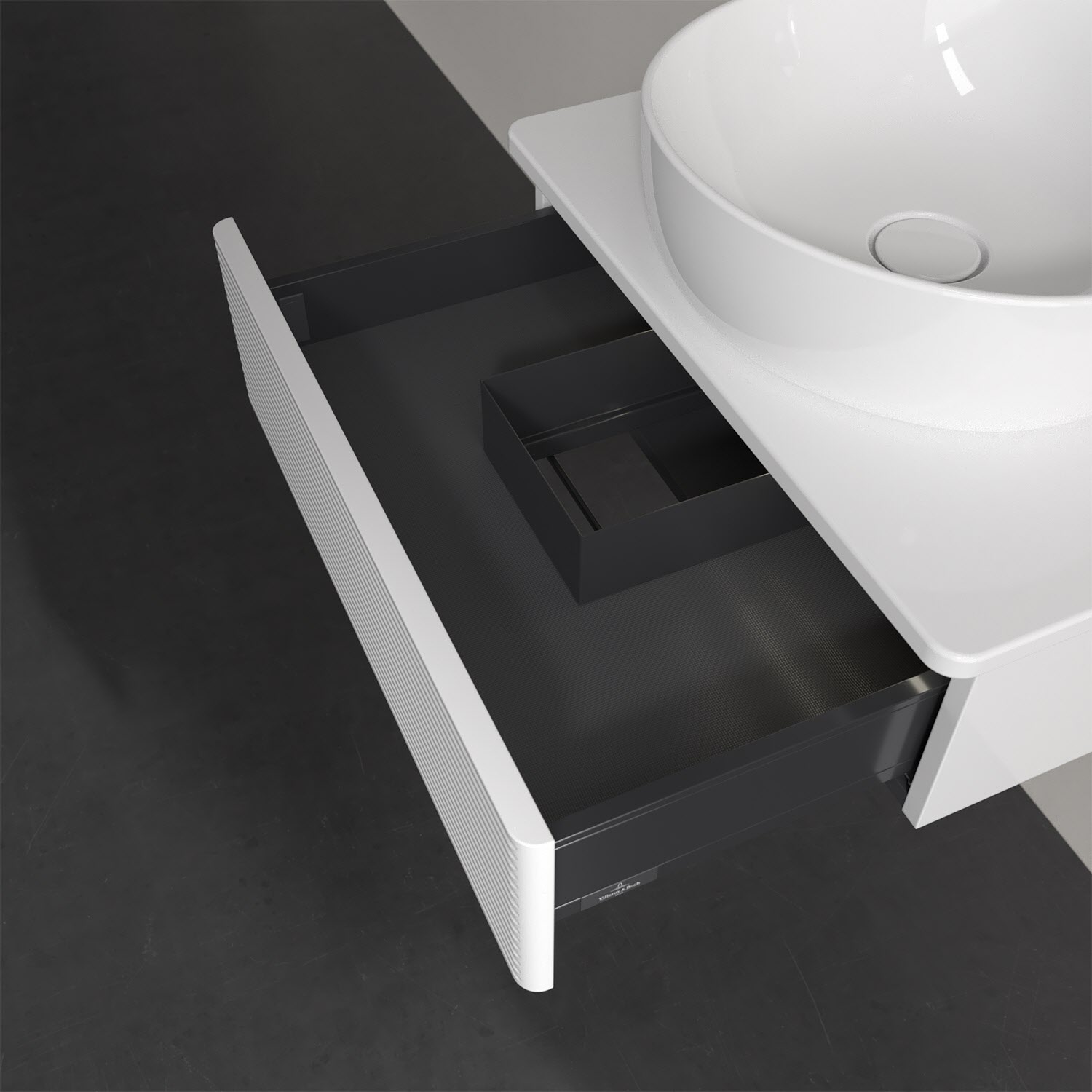 Villeroy & Boch Antao Waschbeckenunterschrank, 60 x 19 cm, 1 Auszug mit LED-Licht, Front mit Struktur, ohne Hahnloch