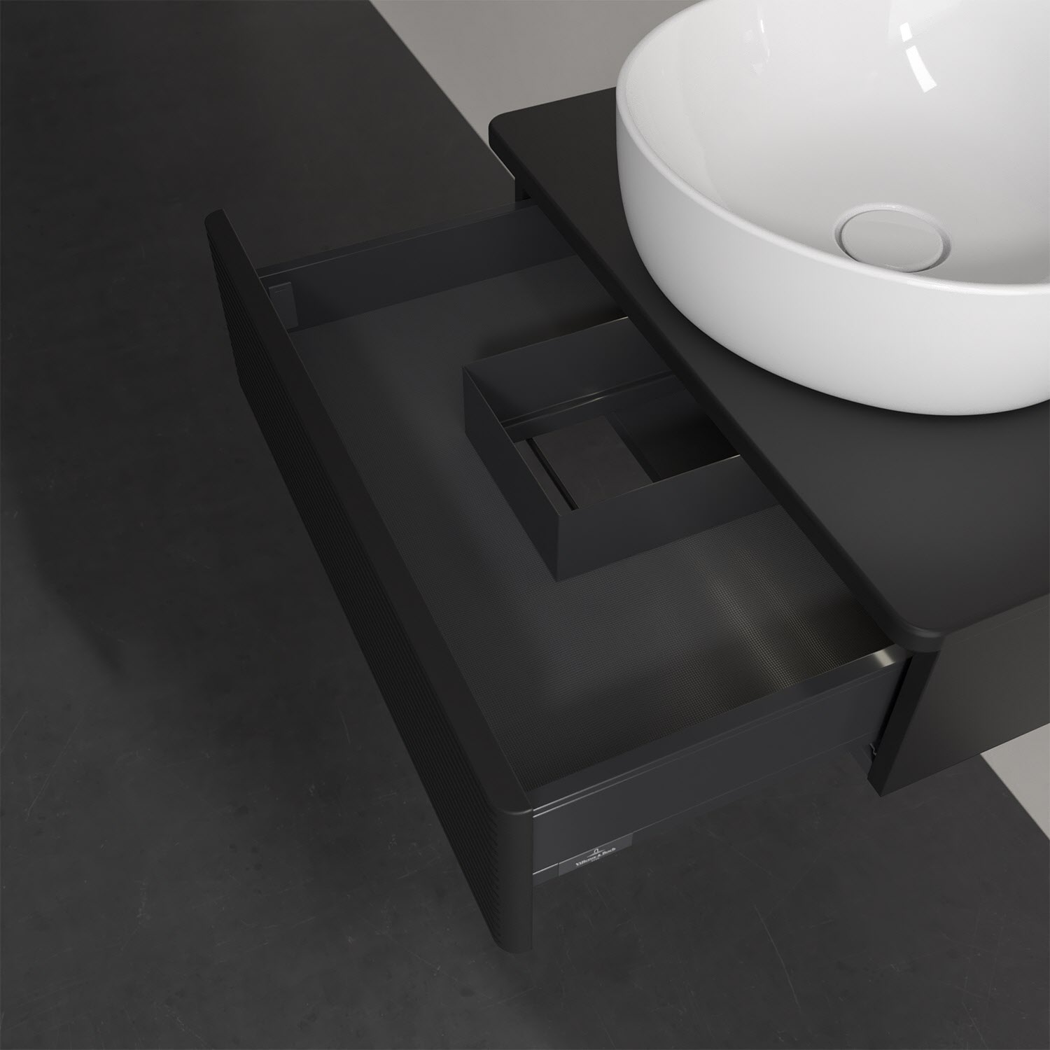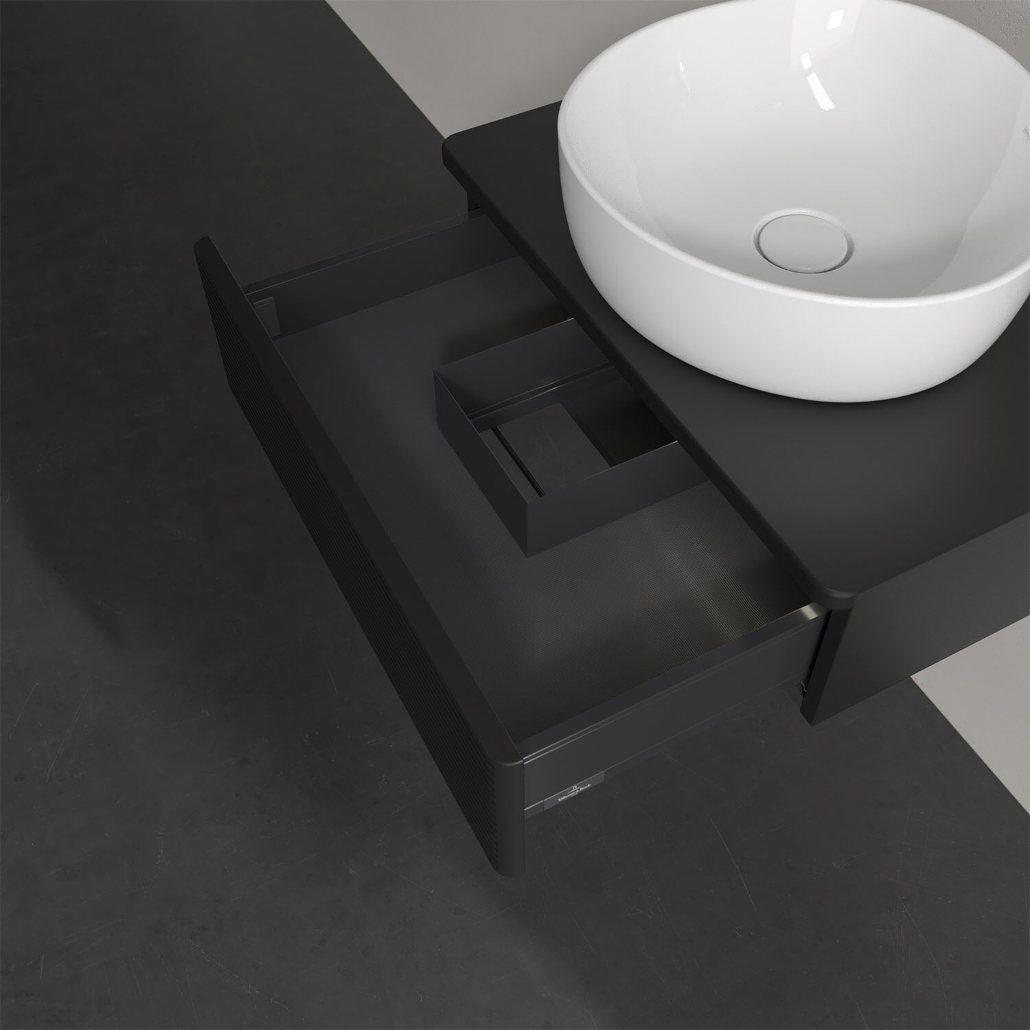 Villeroy & Boch Antao Waschbeckenunterschrank, 60 x 19 cm, 1 Auszug mit LED-Licht, Front mit Struktur, ohne Hahnloch