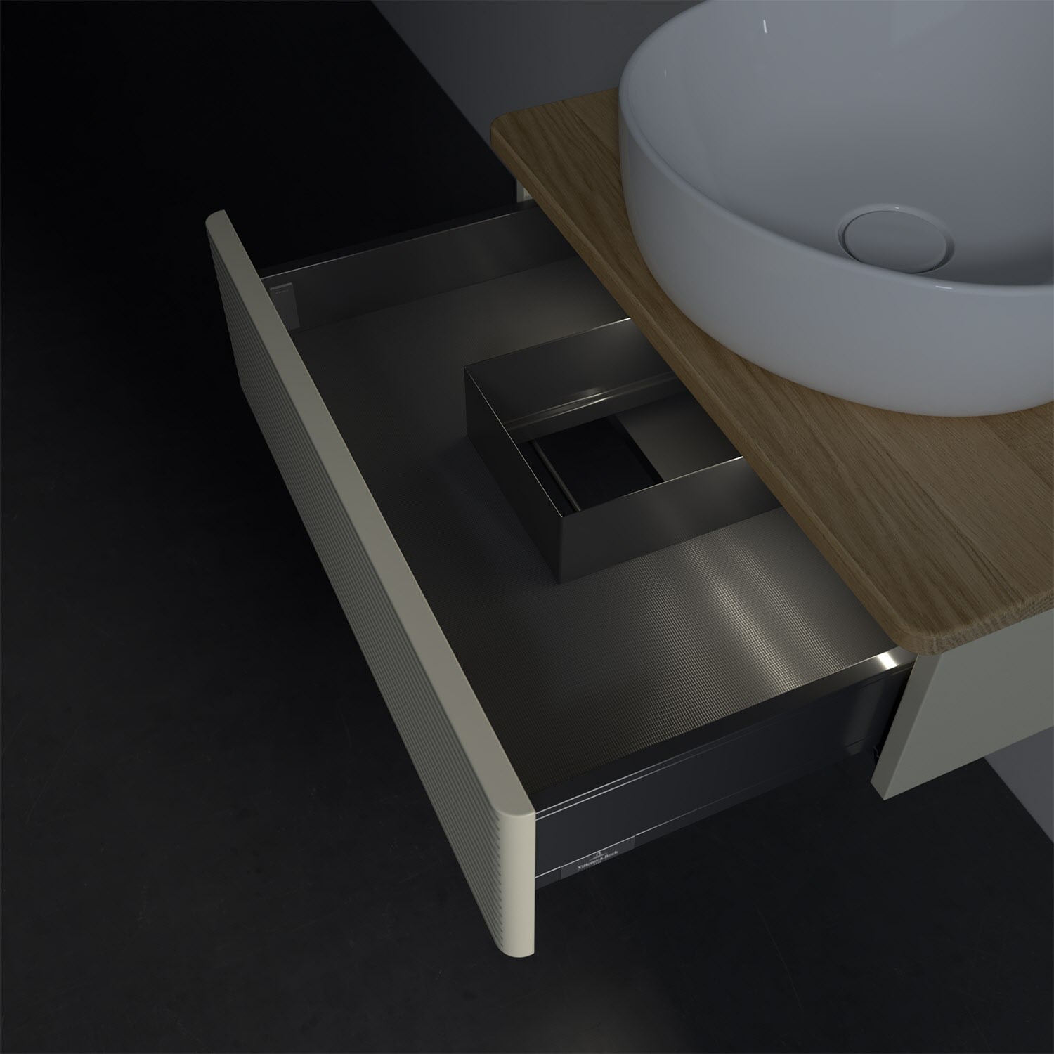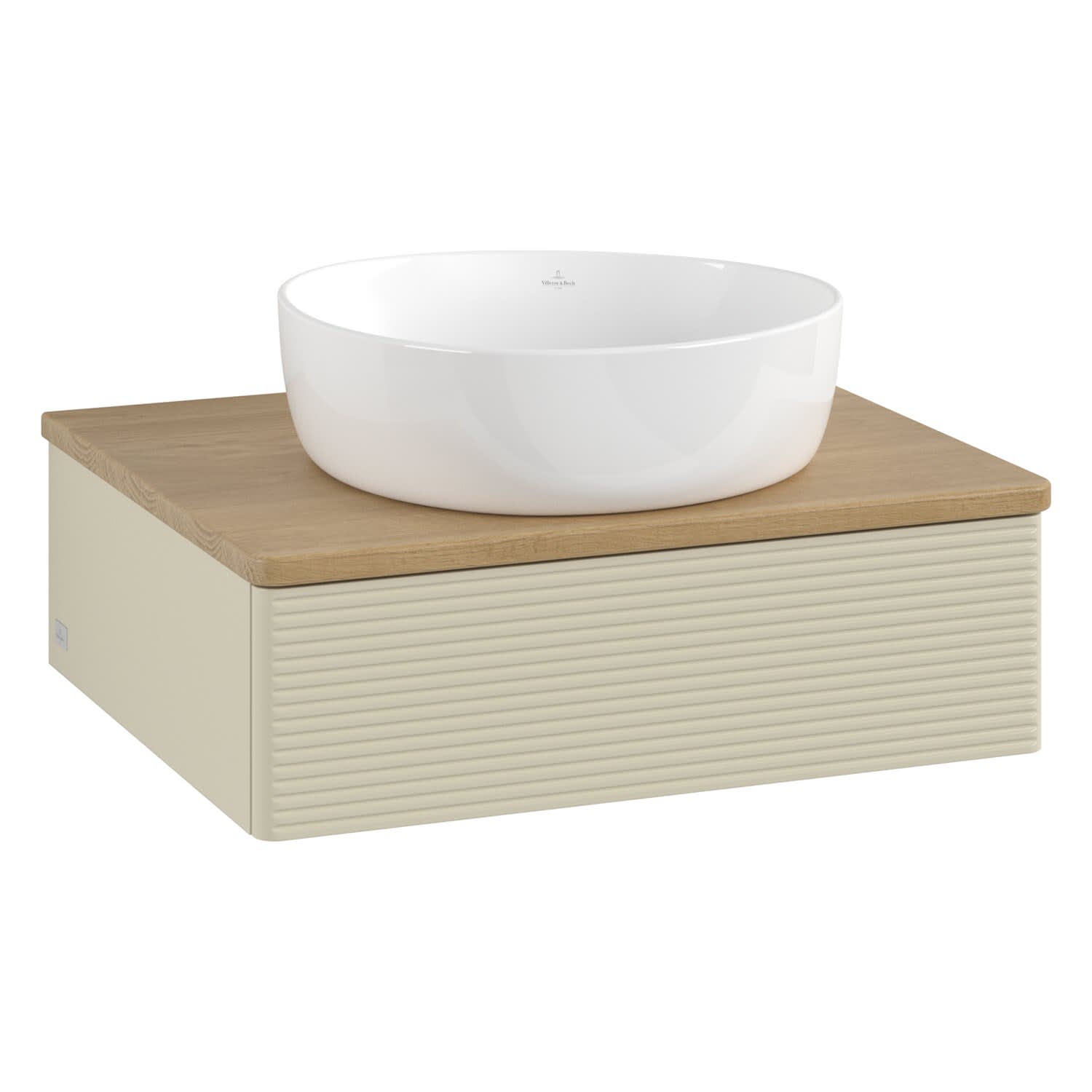 Villeroy & Boch Antao Waschbeckenunterschrank, 60 x 19 cm, 1 Auszug mit LED-Licht, Front mit Struktur, ohne Hahnloch