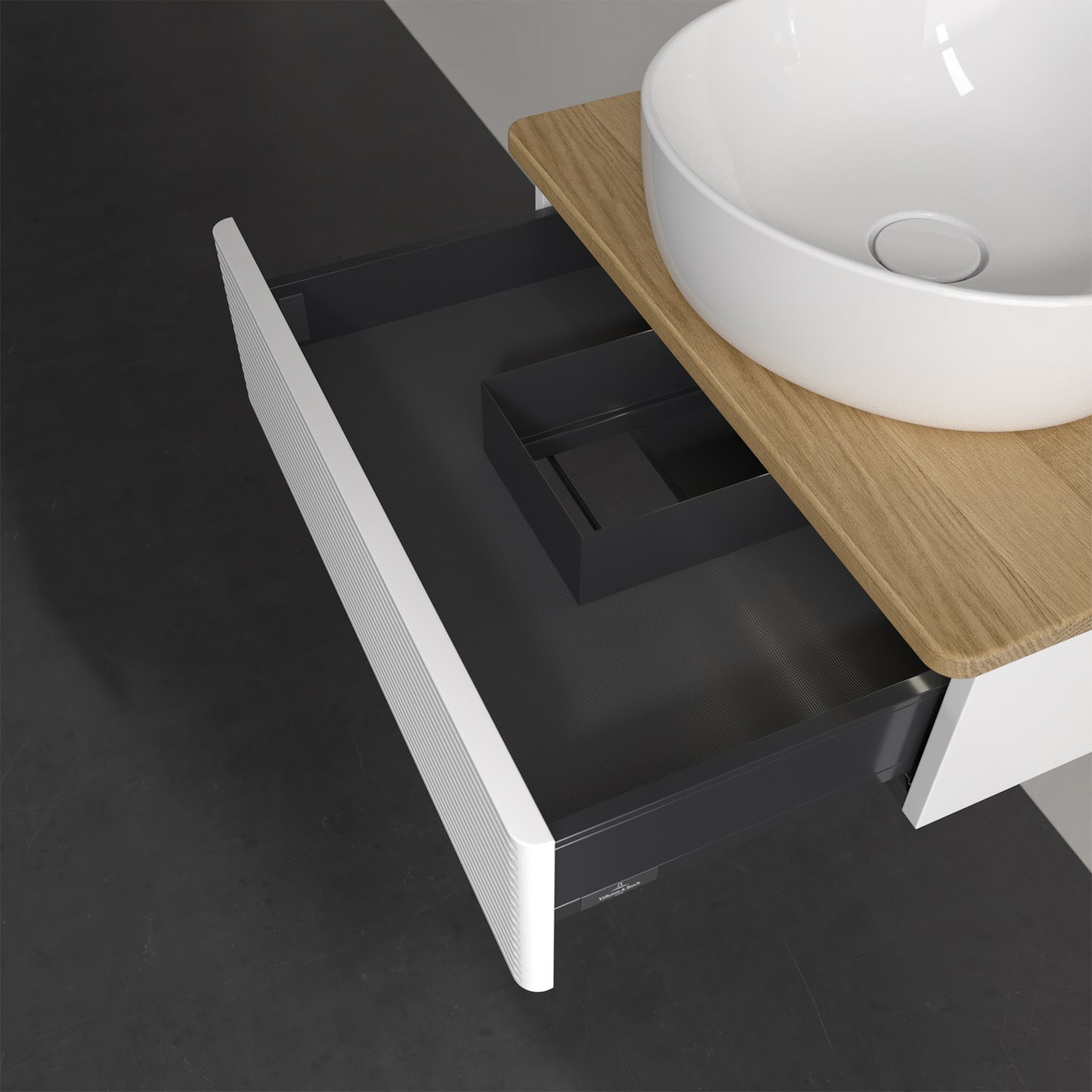 Villeroy & Boch Antao Waschbeckenunterschrank, 60 x 19 cm, 1 Auszug mit LED-Licht, Front mit Struktur, ohne Hahnloch