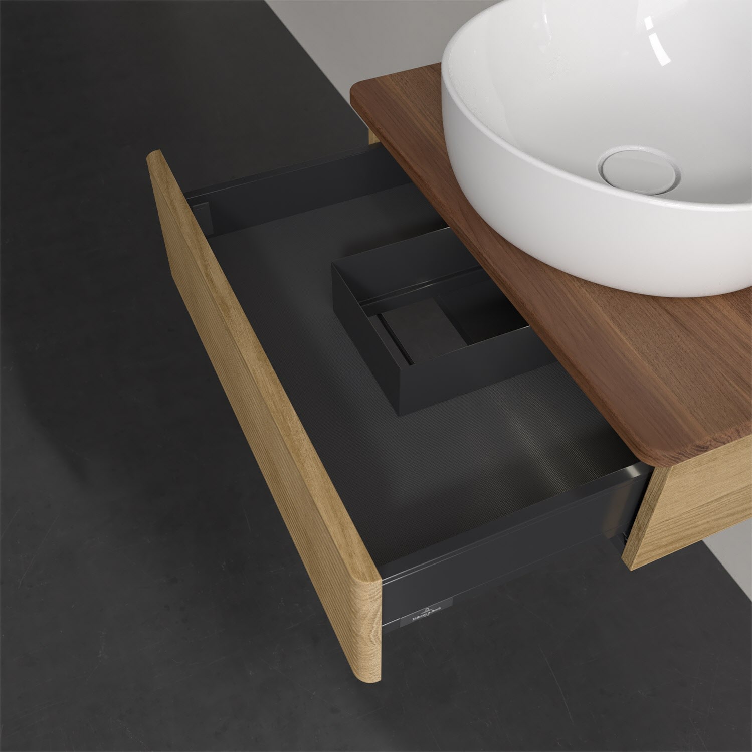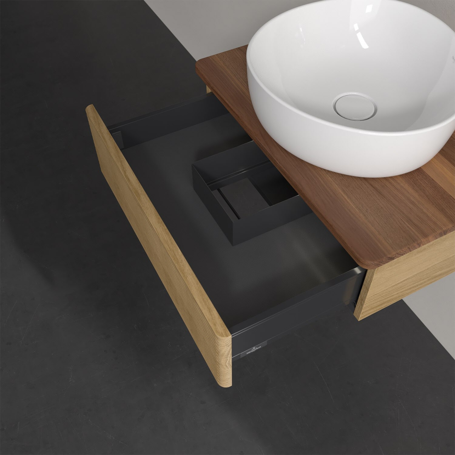 Wenig Platz im Badezimmer und dennoch soll es gemütlich und ordentlich sein? Dann ist der wandhängende Antao Waschtischunterschrank mit seinen sanft abgerundeten Kanten die ideale Lösung. Das geräumige Möbel bietet ausreichend Stauraum für alle nötigen Badutensilien. Zum Öffnen genügt dank der Push-to-Open Funktion ein leichter Druck auf den grifflosen Auszug mit strukturierter Front, der sich dann in seiner vollen Tiefe öffnet. Dabei wird gleichzeitig die angenehme Auszugsbeleuchtung in Warmweiß aktiviert. Das garantiert den benötigen Überblick! Praktisch ist auch der integrierte Antirutschboden und die SoftClosing Funktion, die ein Umfallen oder Verrutschen der verstauten Produkte verhindern. Villeroy & Boch hat alles durchdacht! Für eine besonders leichte Pflege sorgt die mehrschichtig deckend lackierte Oberfläche. Bei der Ausführung in Massivholz wird dank des verarbeiteten Massivholzes jedes Möbel zu einem Unikat, das sich durch das lebendige Naturmaterial durch seine einzigartige Struktur und Maserung auszeichnet.