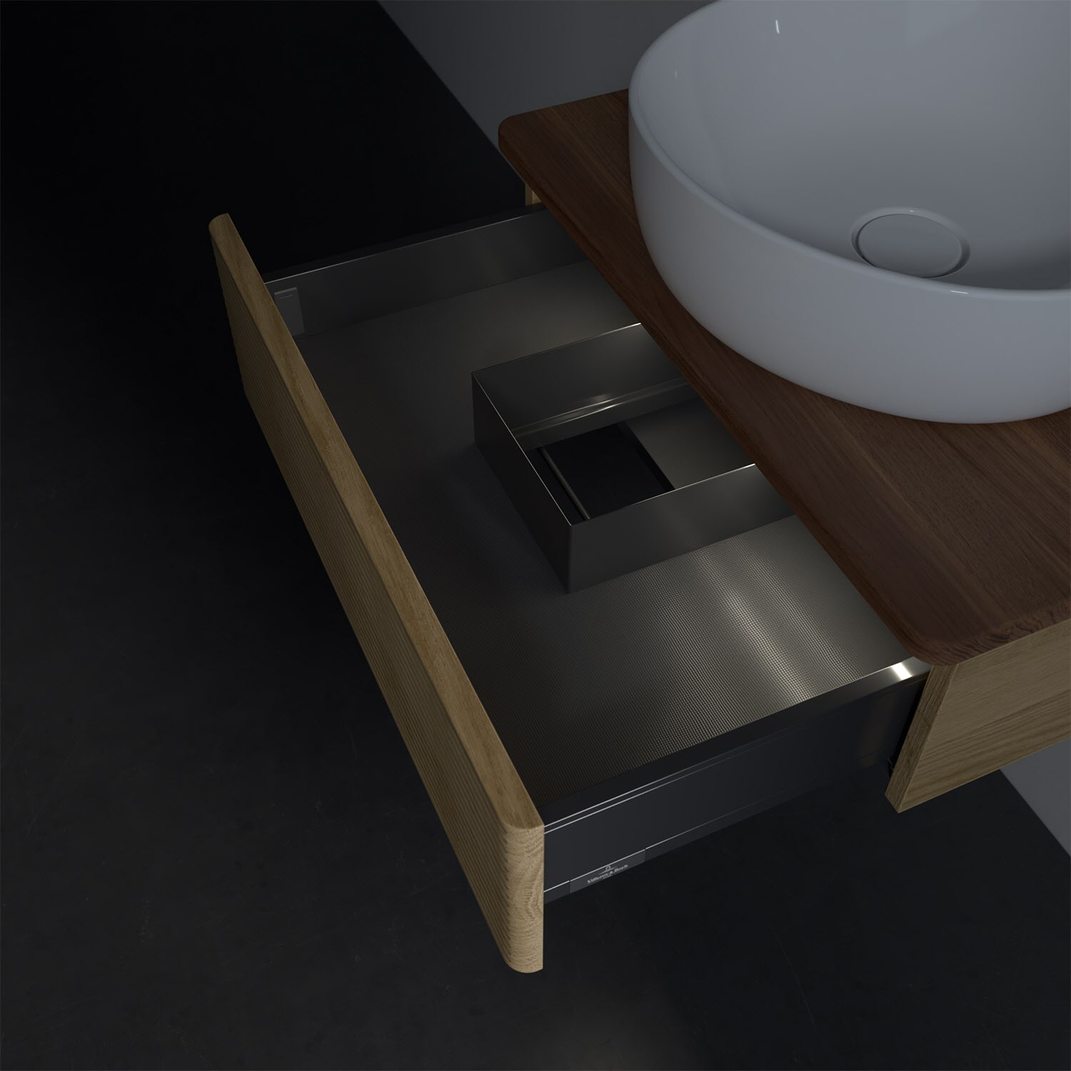 Villeroy & Boch Antao Waschbeckenunterschrank, 60 x 19 cm, 1 Auszug mit LED-Licht, Front mit Struktur, ohne Hahnloch