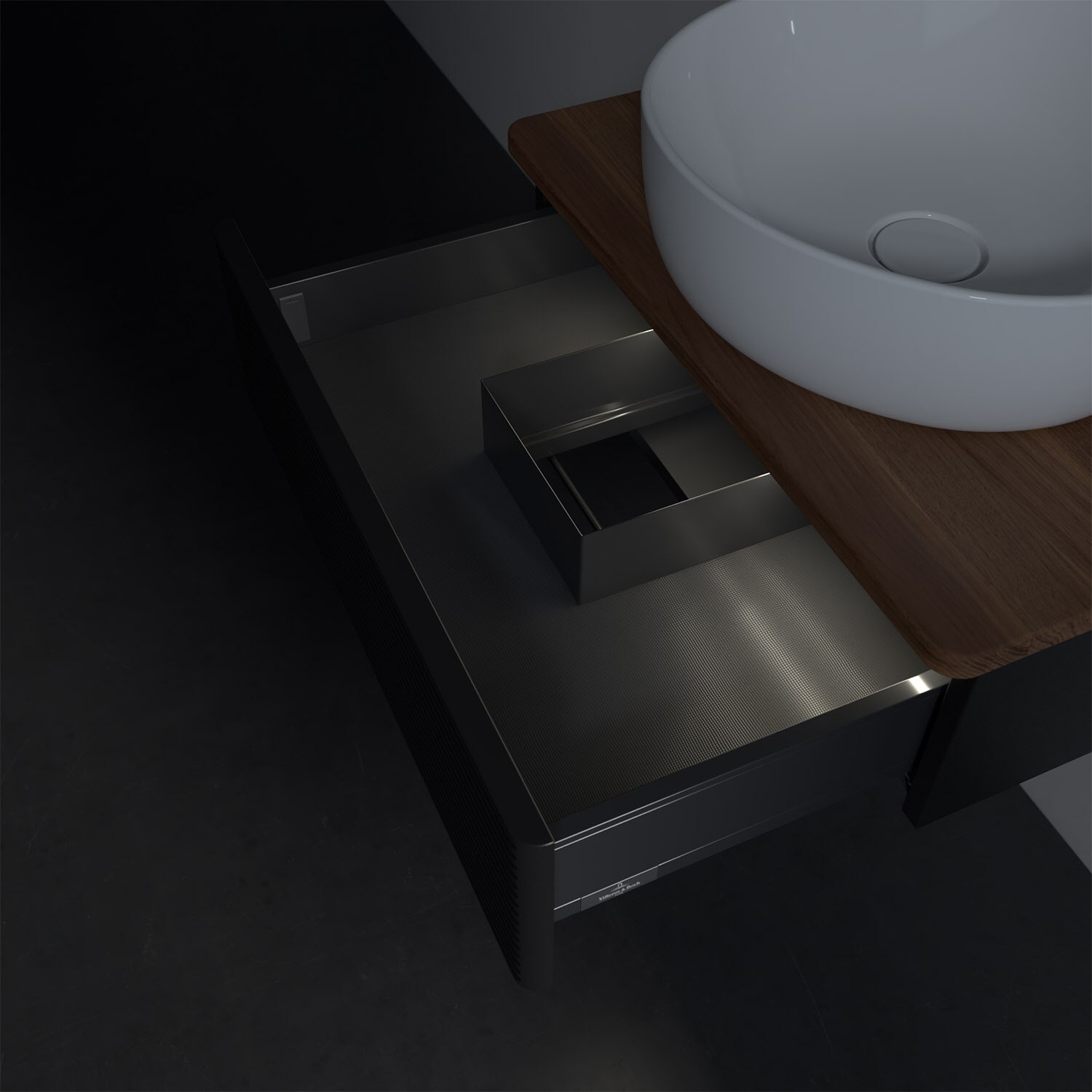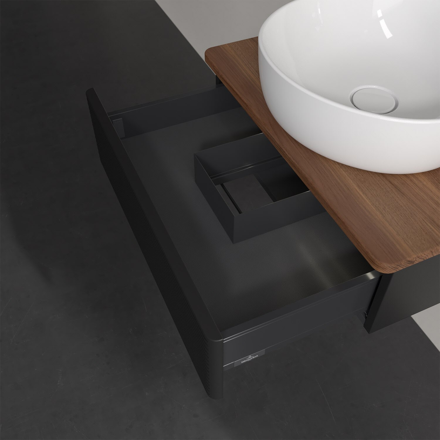Villeroy & Boch Antao Waschbeckenunterschrank, 60 x 19 cm, 1 Auszug mit LED-Licht, Front mit Struktur, ohne Hahnloch