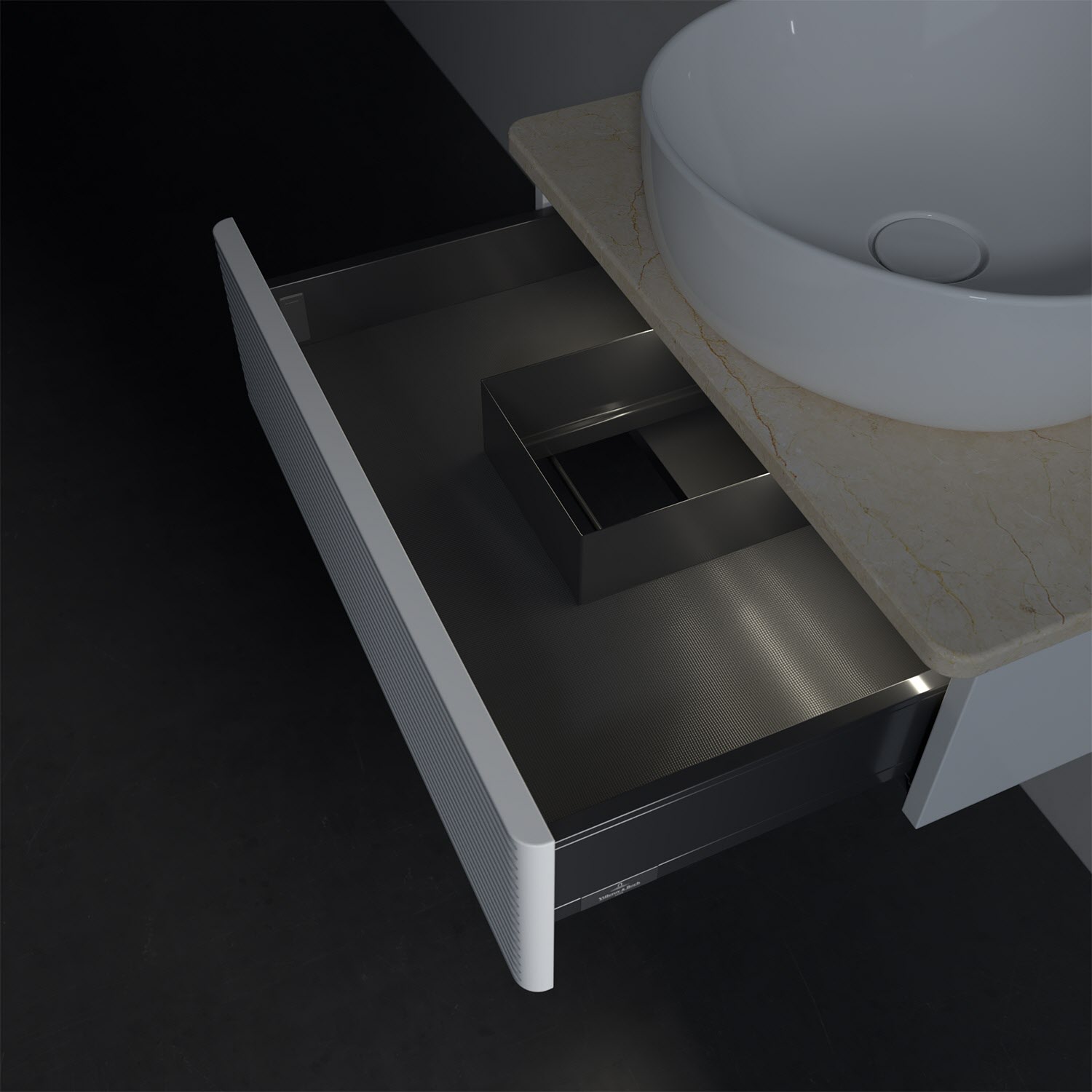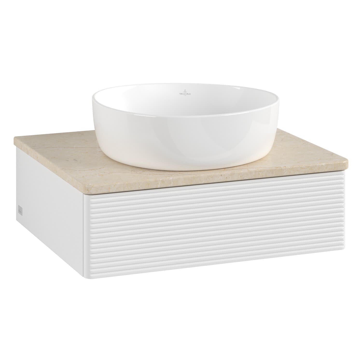 Villeroy & Boch Antao Waschbeckenunterschrank, 60 x 19 cm, 1 Auszug mit LED-Licht, Front mit Struktur, ohne Hahnloch