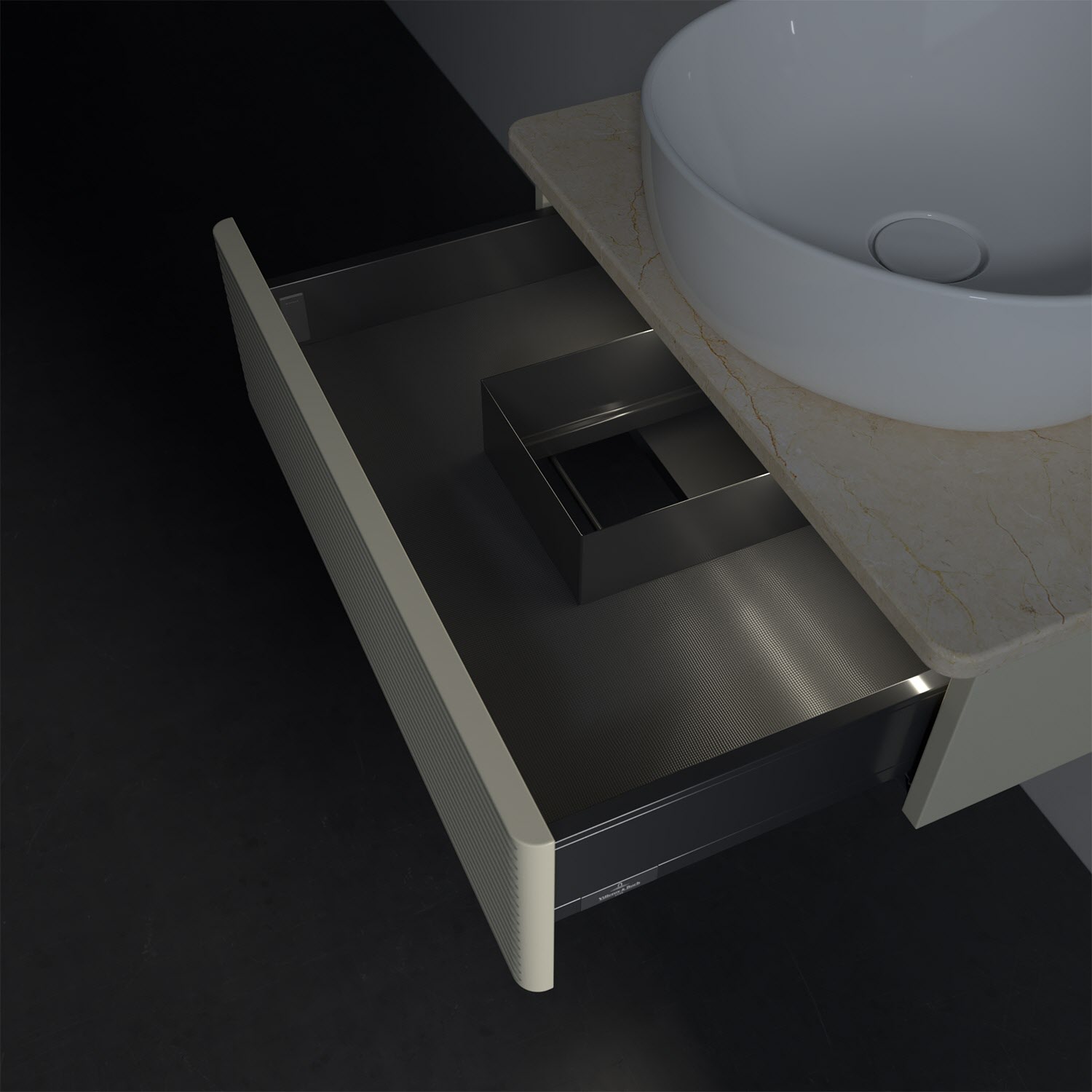 - kein Umfallen oder Verrutschen von Pflegeprodukten in den Schubladen dank rutschhemmendem Boden