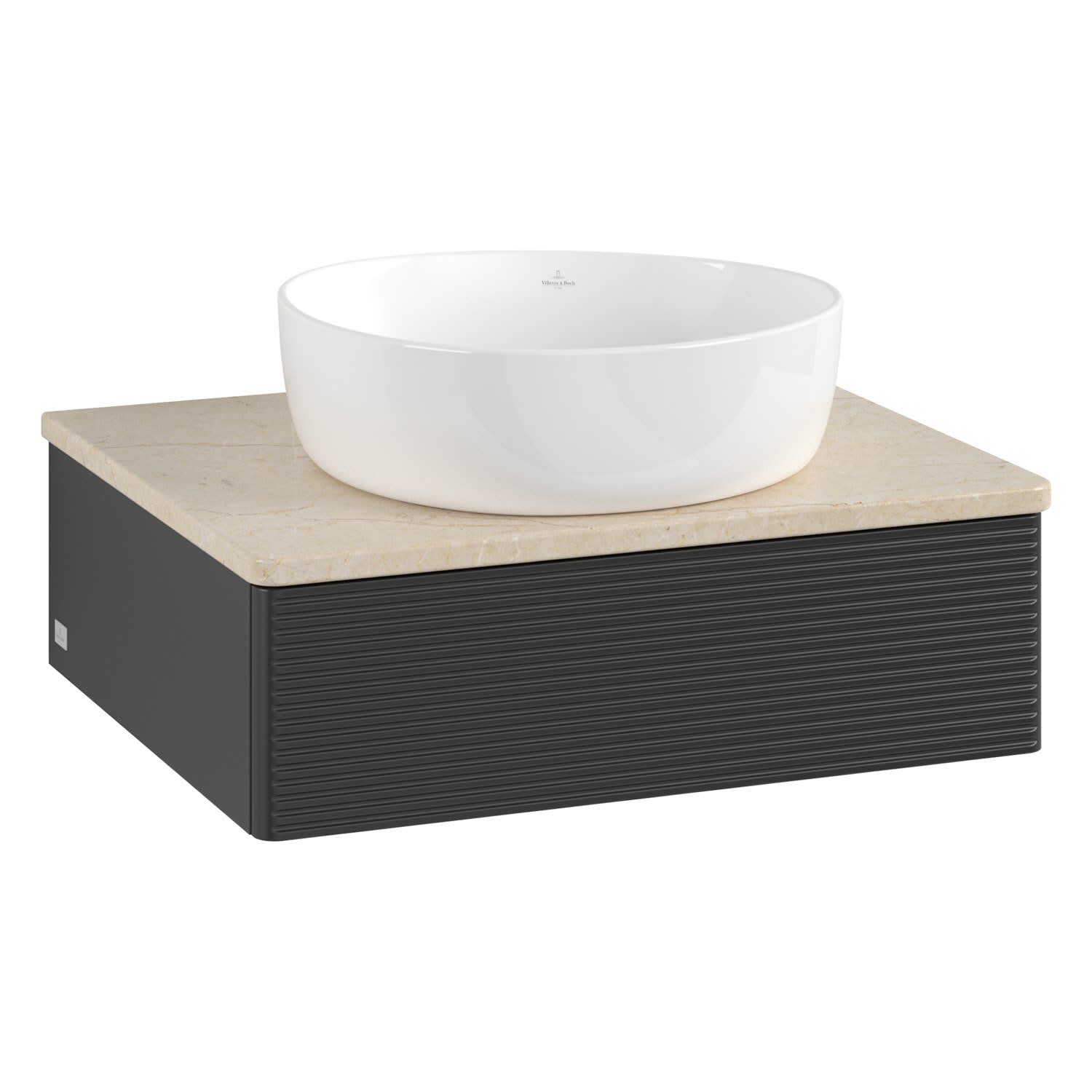 Villeroy & Boch Antao Waschbeckenunterschrank, 60 x 19 cm, 1 Auszug mit LED-Licht, Front mit Struktur, ohne Hahnloch