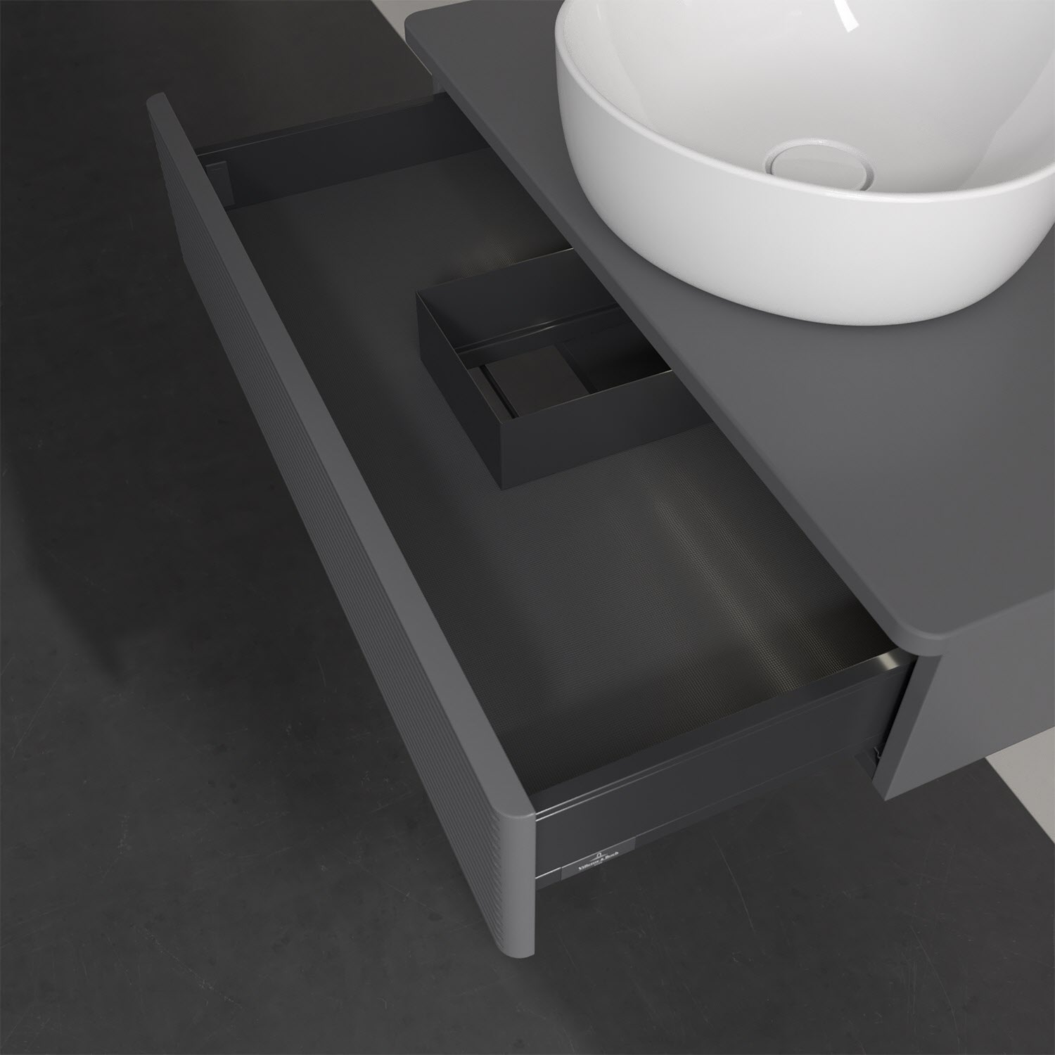 - kein Umfallen oder Verrutschen von Pflegeprodukten in den Schubladen dank rutschhemmendem Boden