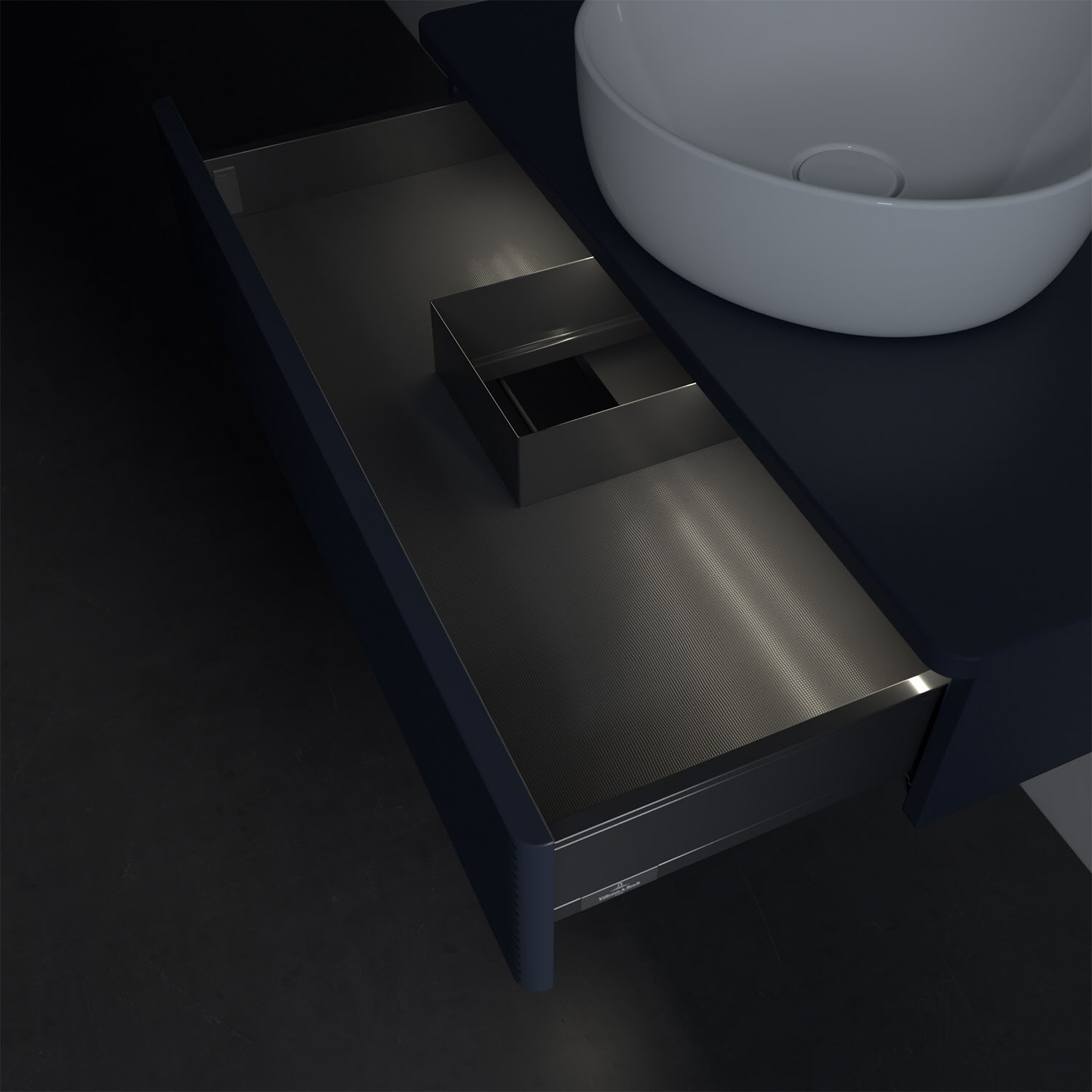 - in Schublade integrierte LED-Leiste mit warmweißem Licht zur Beleuchtung des Innenlebens