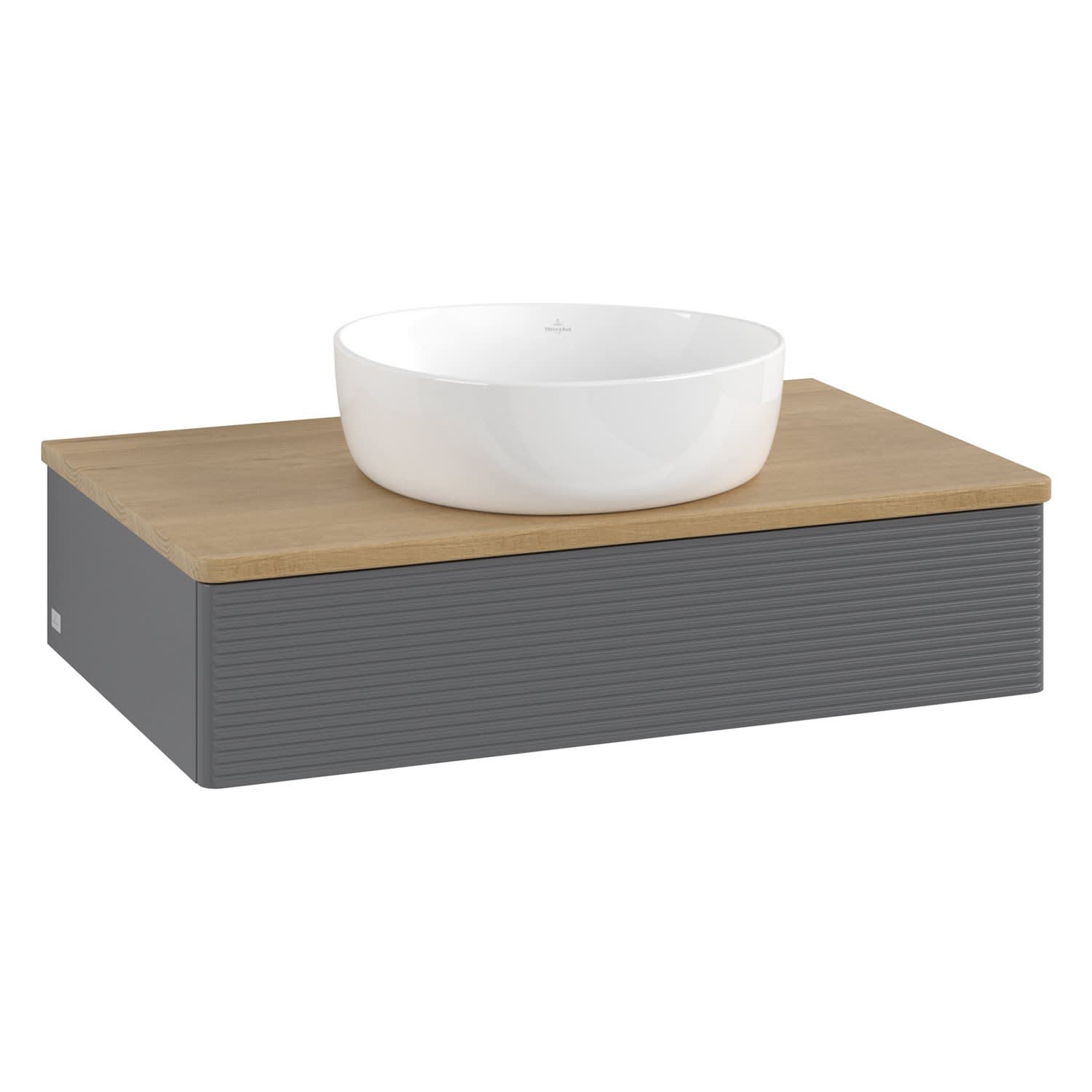 Villeroy & Boch Antao Waschbeckenunterschrank, 80 x 19 cm, 1 Auszug mit LED-Licht, Front mit Struktur, ohne Hahnloch