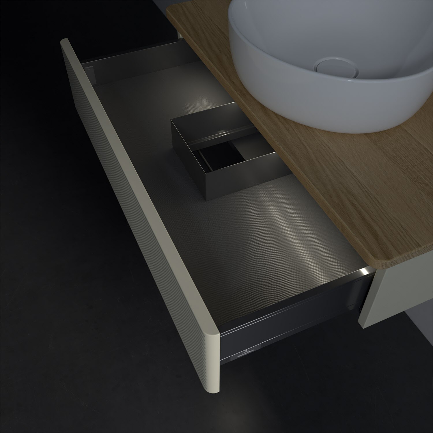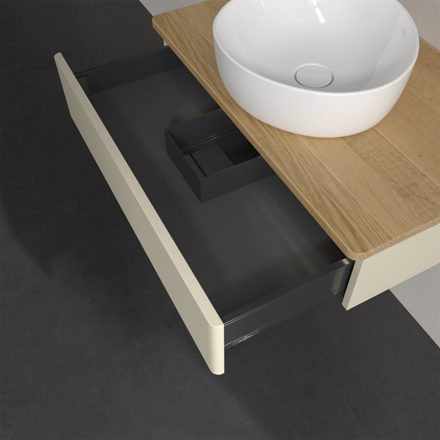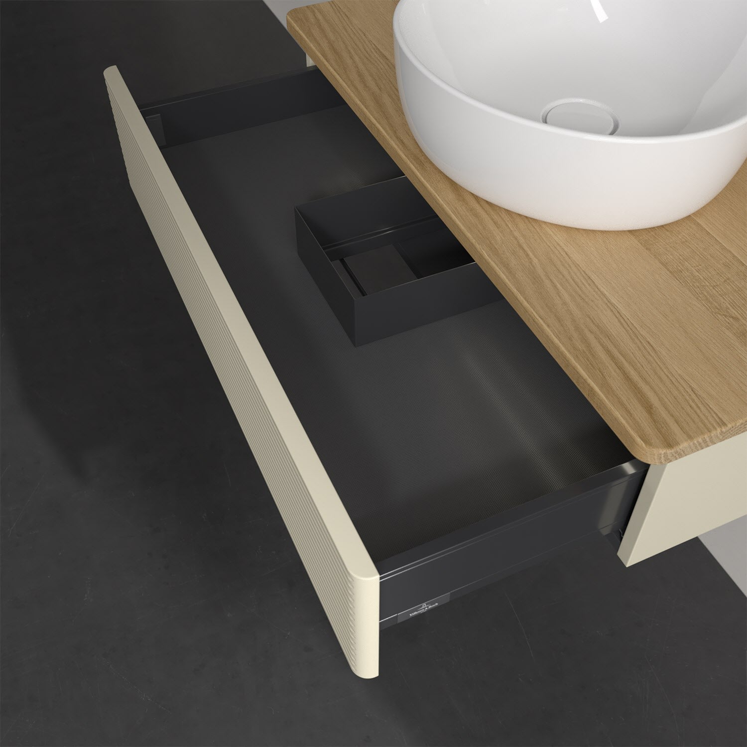 - kein Umfallen oder Verrutschen von Pflegeprodukten in den Schubladen dank rutschhemmendem Boden