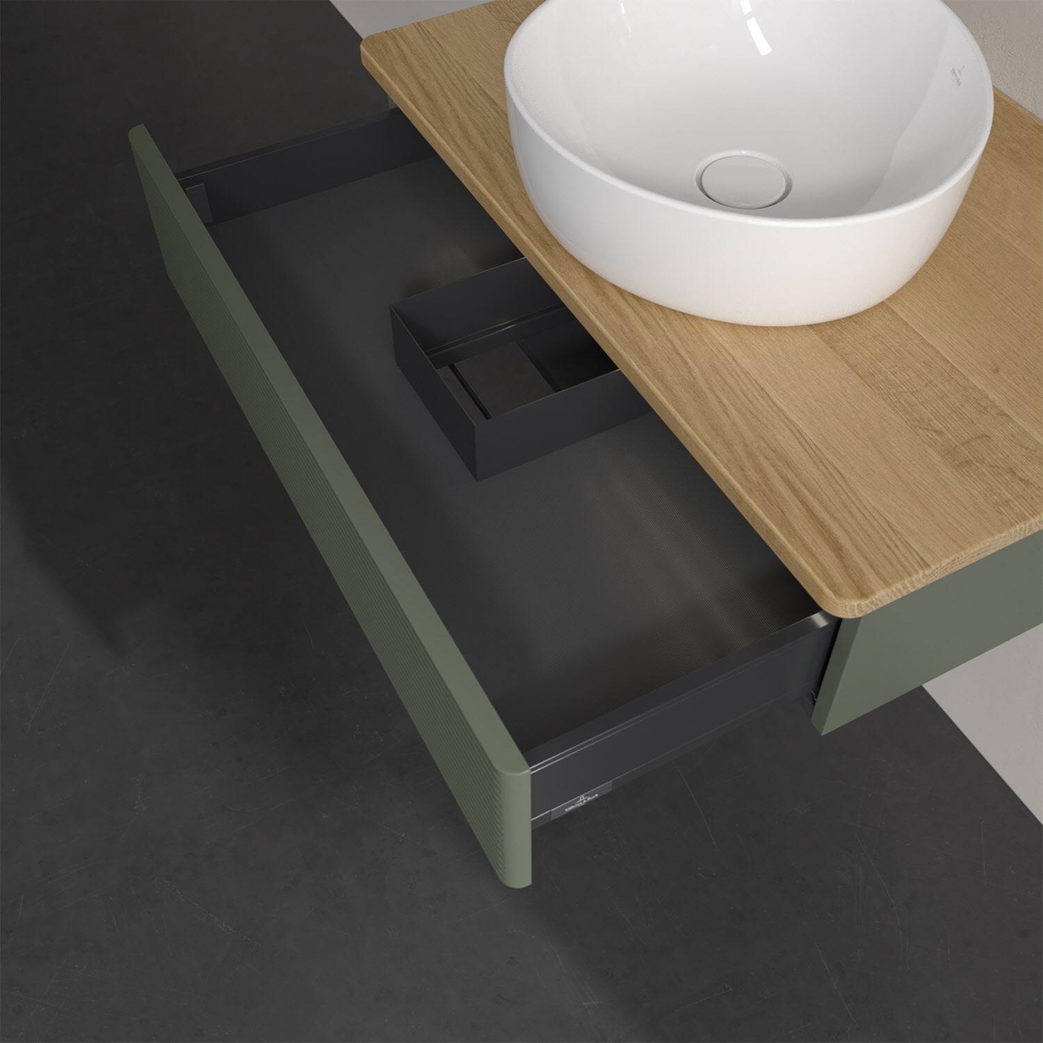 Villeroy & Boch Antao Waschbeckenunterschrank, 80 x 19 cm, 1 Auszug mit LED-Licht, Front mit Struktur, ohne Hahnloch