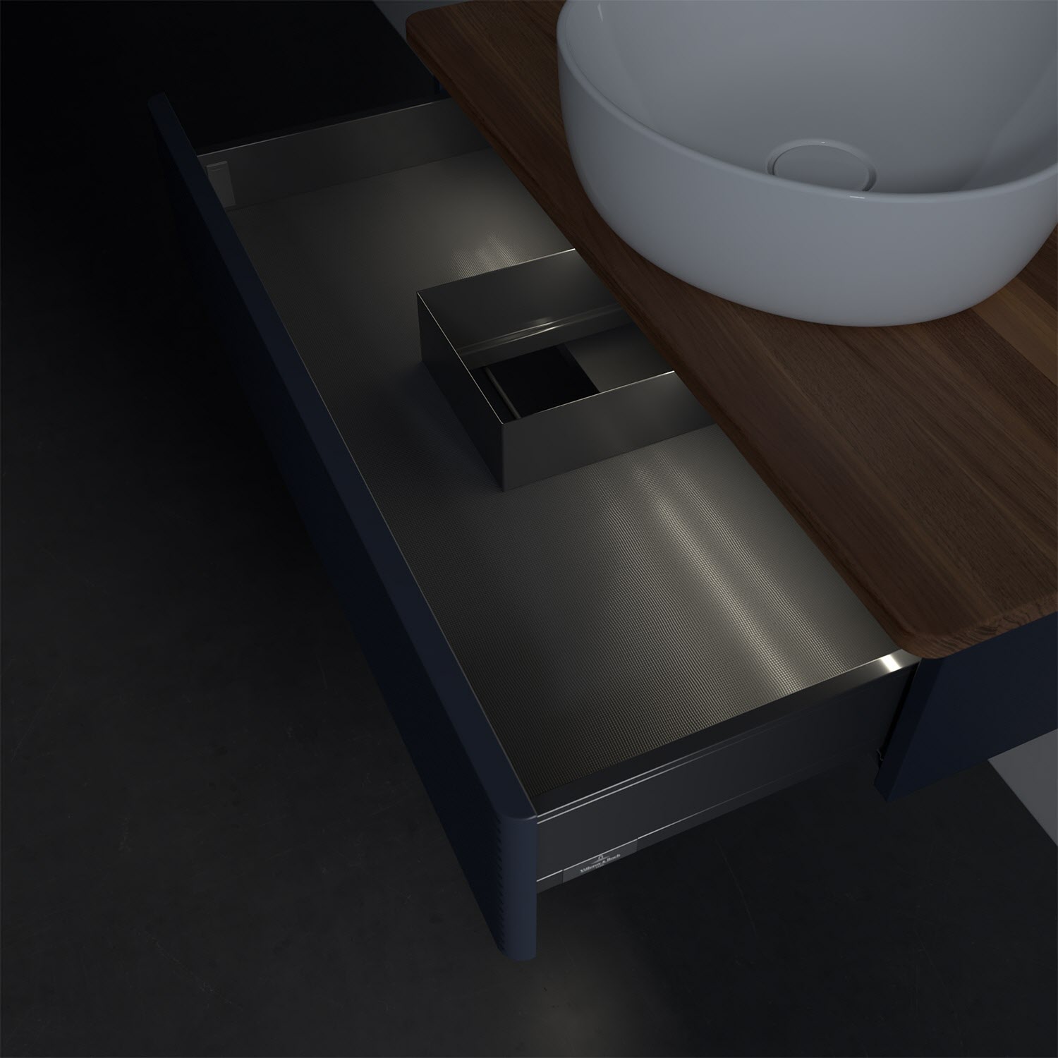- in Schublade integrierte LED-Leiste mit warmweißem Licht zur Beleuchtung des Innenlebens