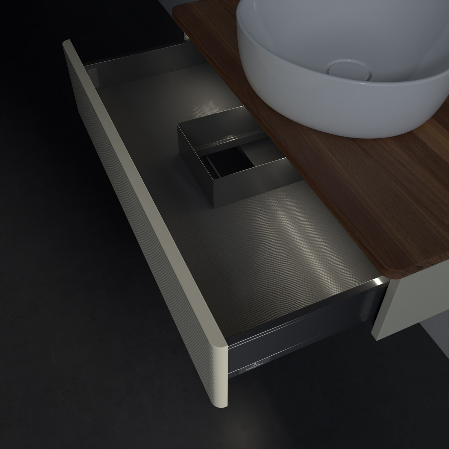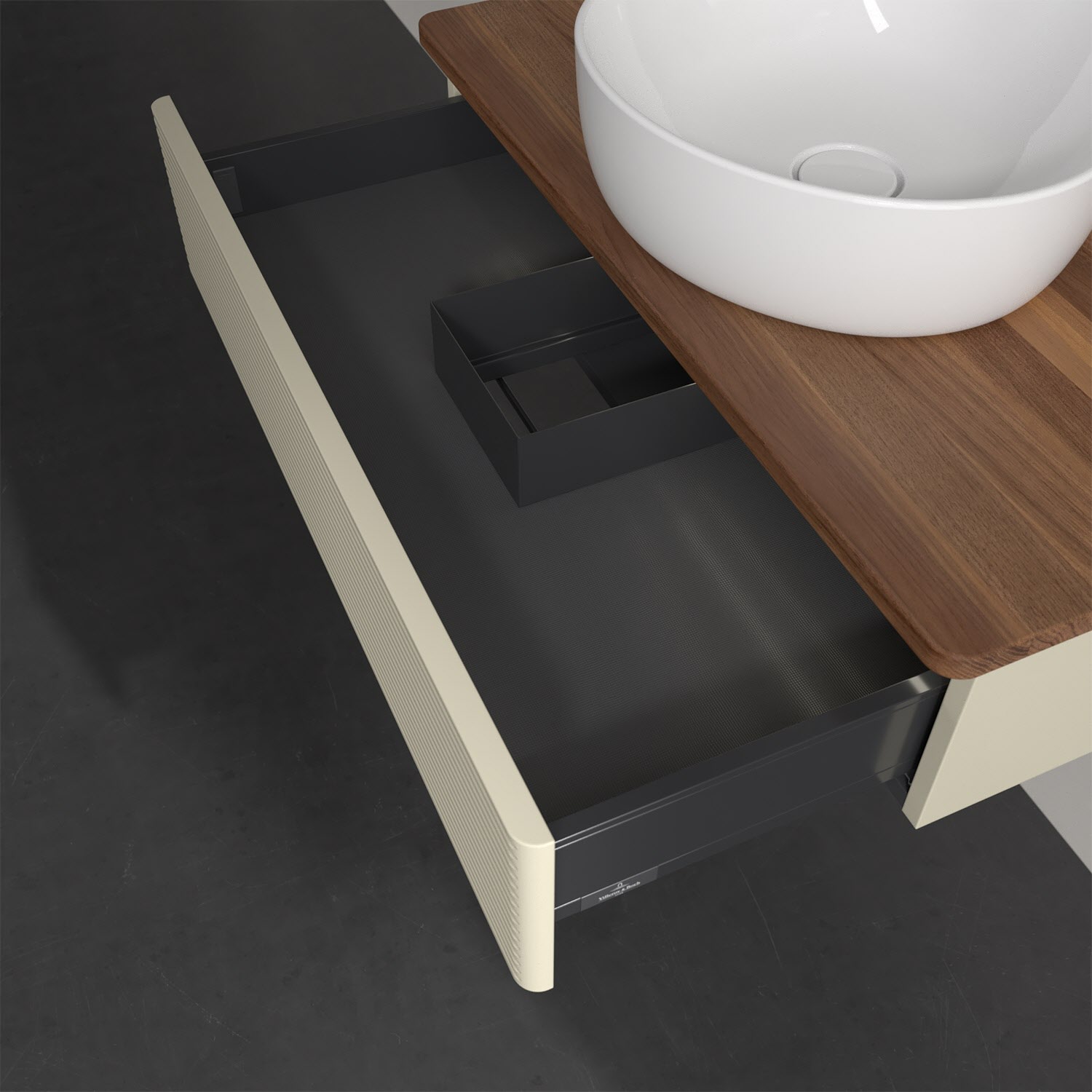 - kein Umfallen oder Verrutschen von Pflegeprodukten in den Schubladen dank rutschhemmendem Boden