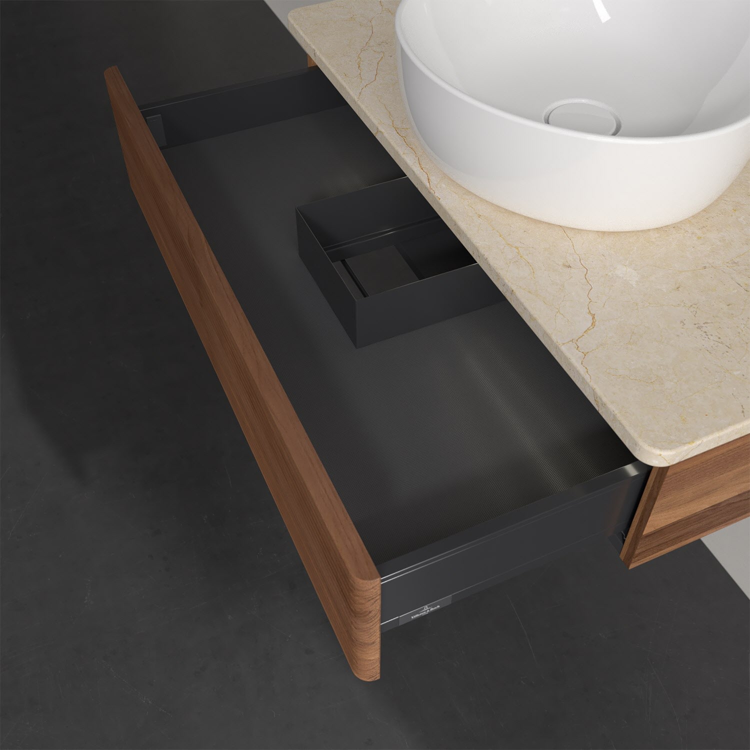 - kein Umfallen oder Verrutschen von Pflegeprodukten in den Schubladen dank rutschhemmendem Boden