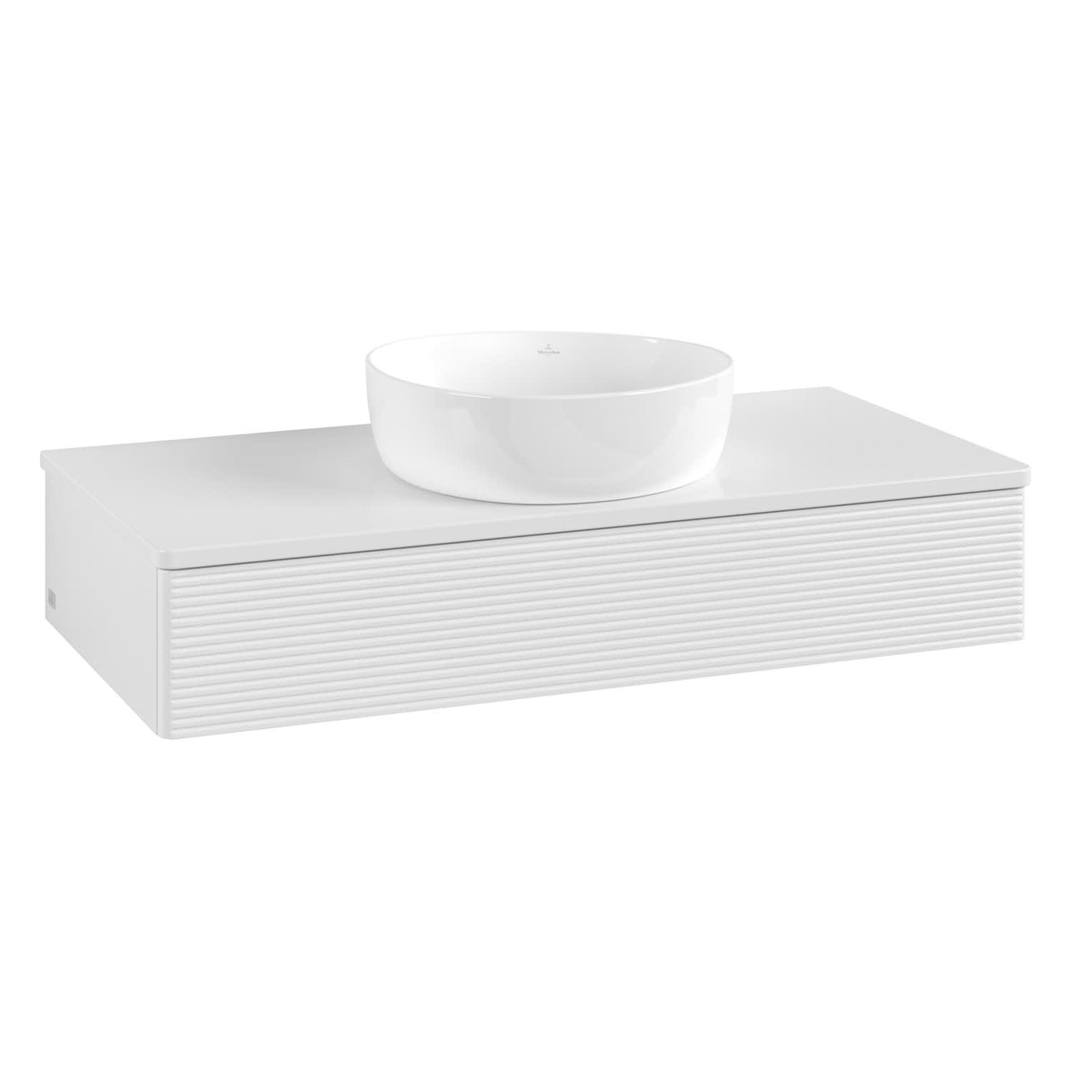 Villeroy & Boch Antao Waschbeckenunterschrank, 100 x 19 cm, 1 Auszug mit LED-Licht, Front mit Struktur, ohne Hahnloch