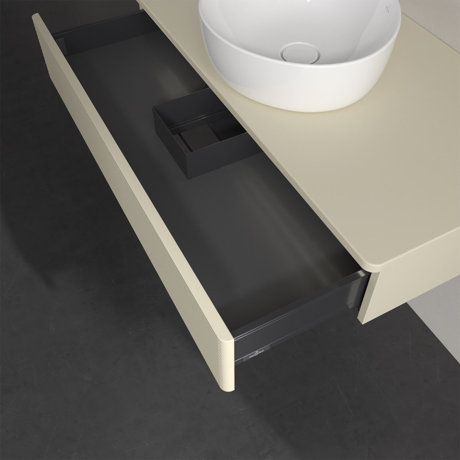 - kein Umfallen oder Verrutschen von Pflegeprodukten in den Schubladen dank rutschhemmendem Boden