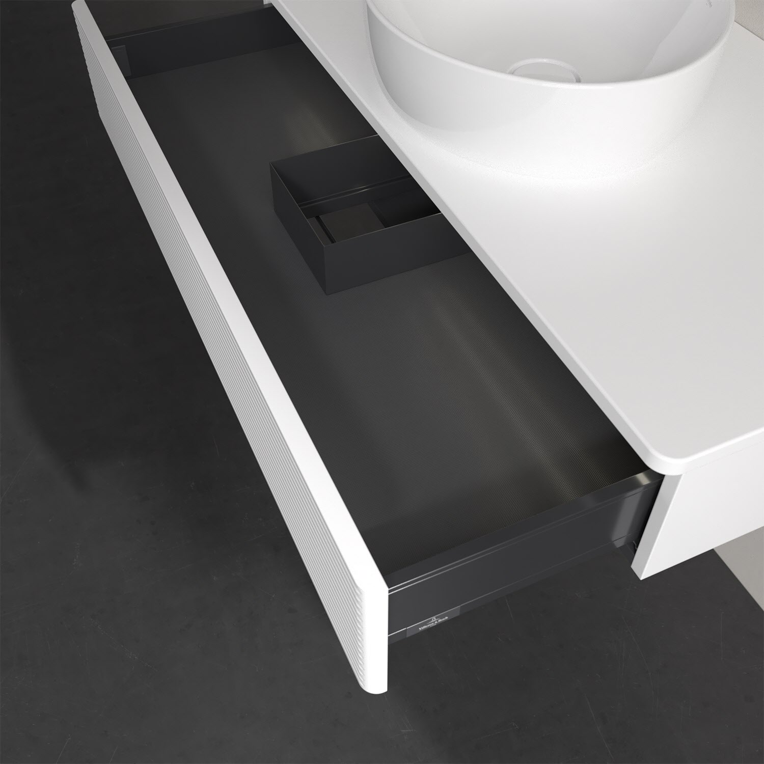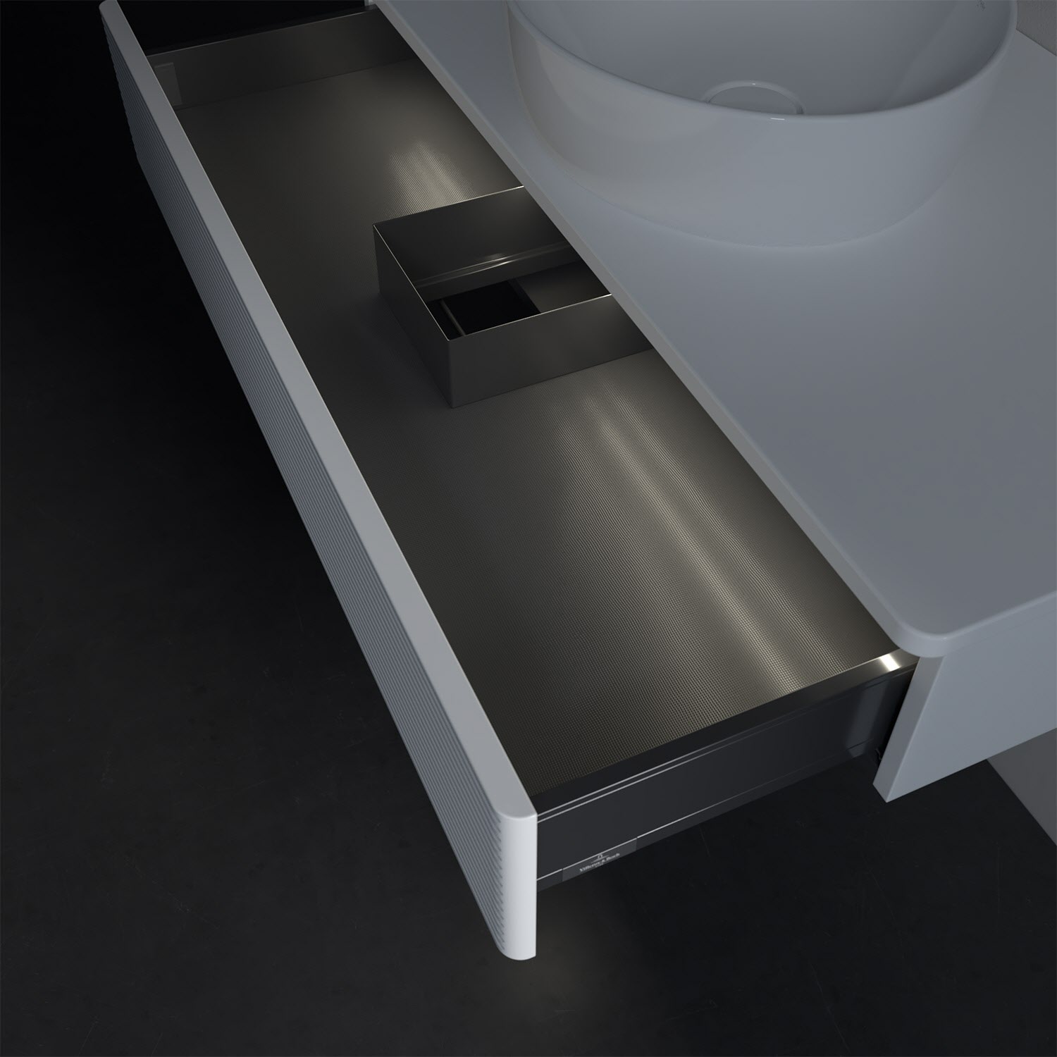 - kein Umfallen oder Verrutschen von Pflegeprodukten in den Schubladen dank rutschhemmendem Boden