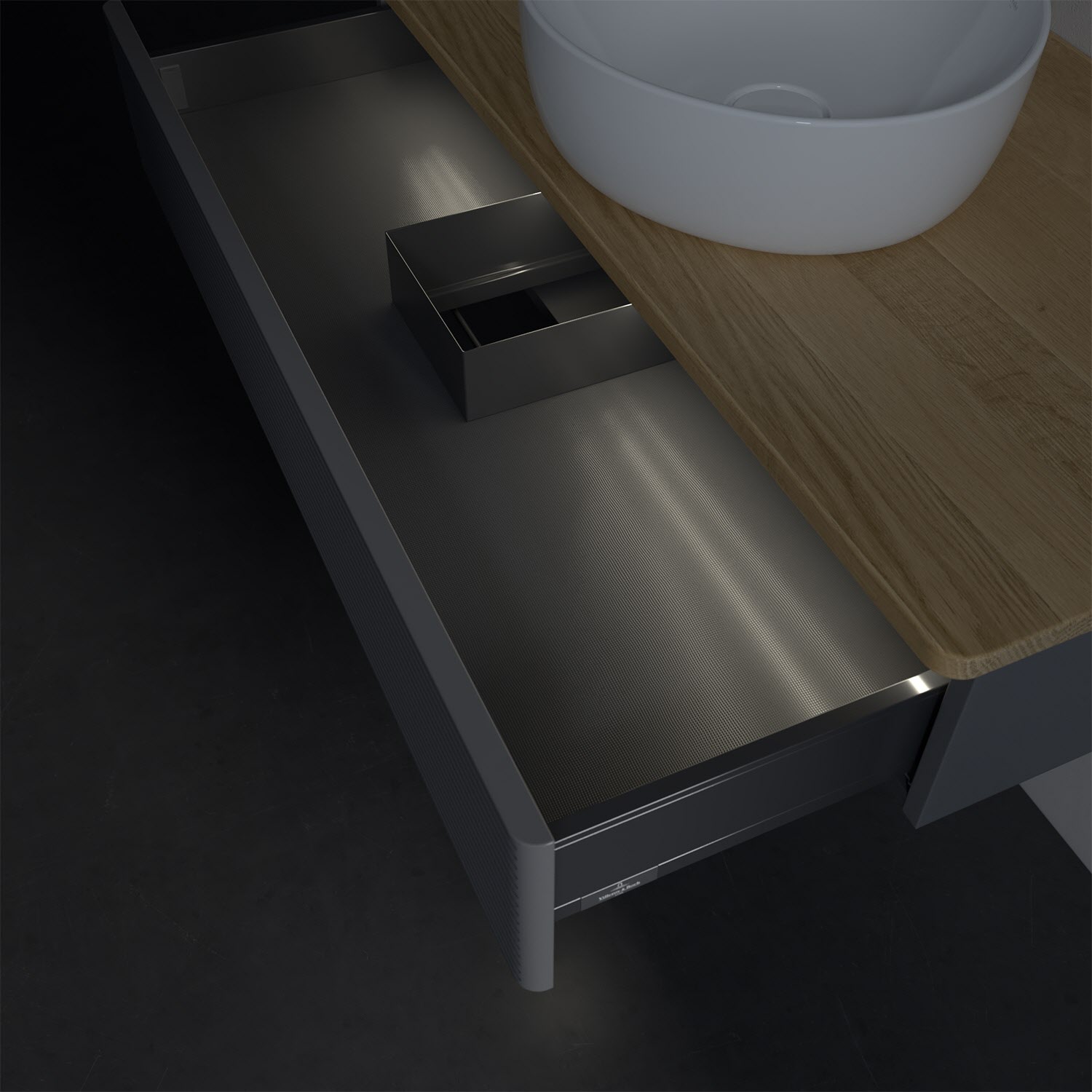 Villeroy & Boch Antao Waschbeckenunterschrank, 100 x 19 cm, 1 Auszug mit LED-Licht, Front mit Struktur, ohne Hahnloch