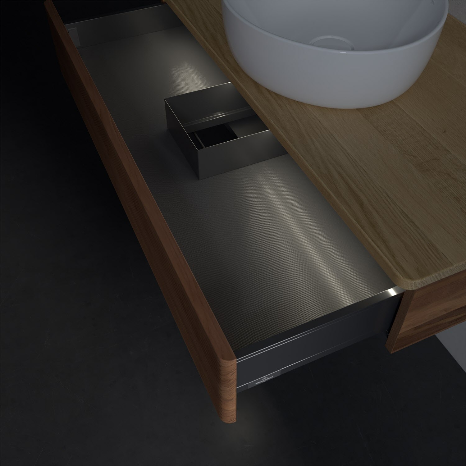 Villeroy & Boch Antao Waschbeckenunterschrank, 100 x 19 cm, 1 Auszug mit LED-Licht, Front mit Struktur, ohne Hahnloch