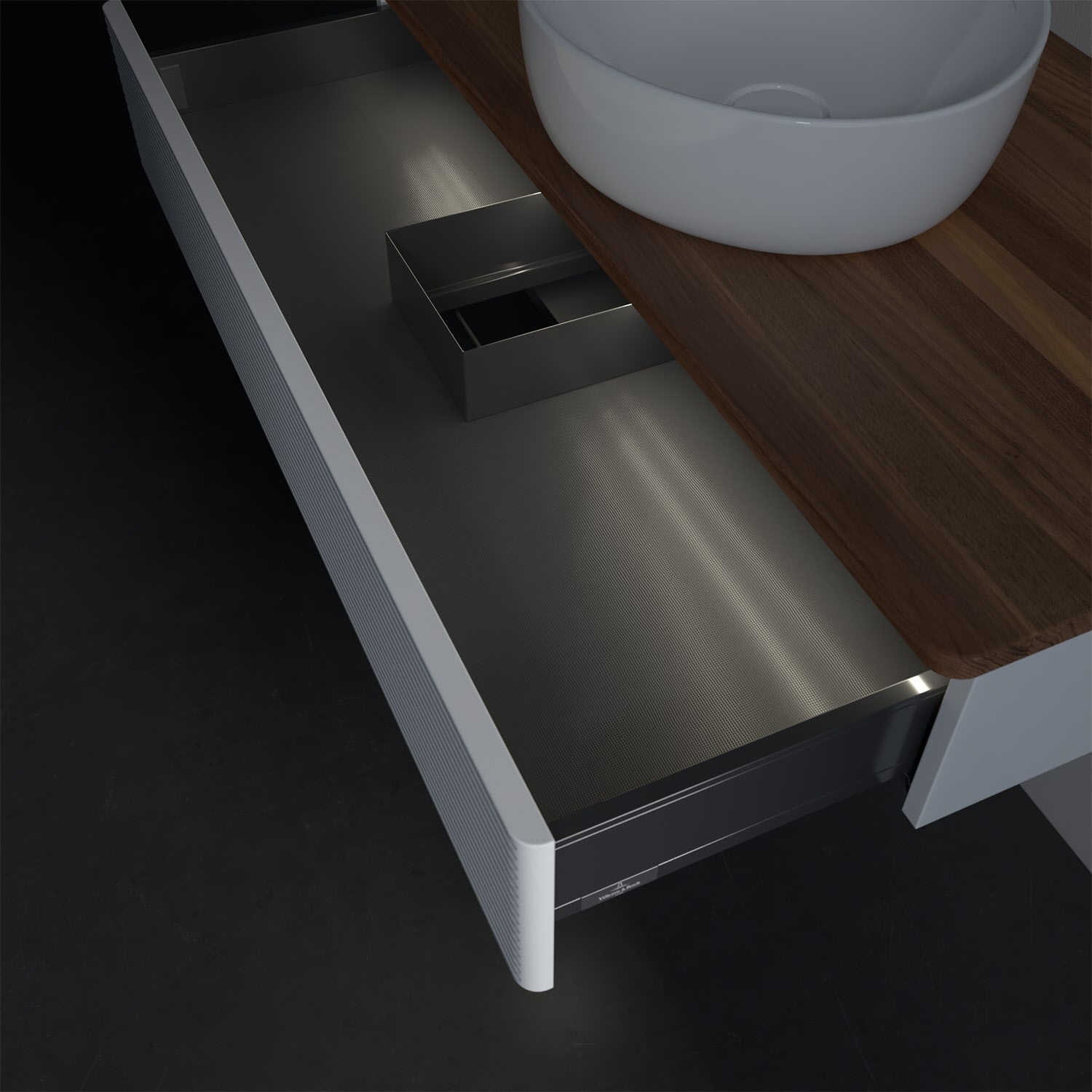 Villeroy & Boch Antao Waschbeckenunterschrank, 100 x 19 cm, 1 Auszug mit LED-Licht, Front mit Struktur, ohne Hahnloch