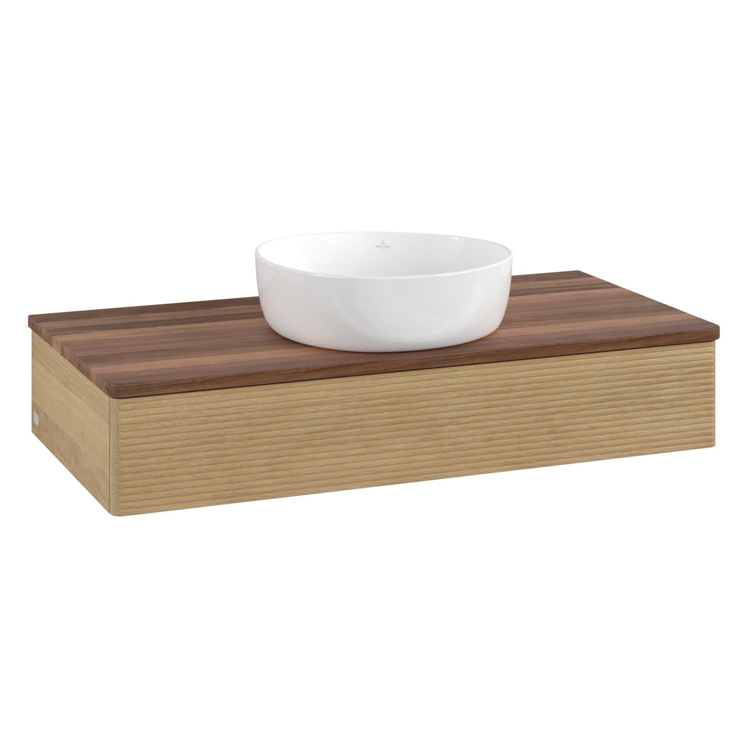 Villeroy & Boch Antao Waschbeckenunterschrank, 100 x 19 cm, 1 Auszug mit LED-Licht, Front mit Struktur, ohne Hahnloch