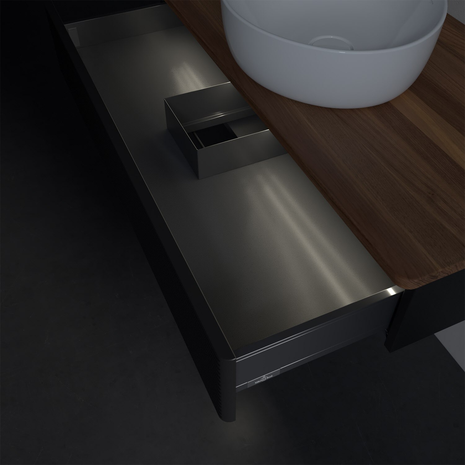 Villeroy & Boch Antao Waschbeckenunterschrank, 100 x 19 cm, 1 Auszug mit LED-Licht, Front mit Struktur, ohne Hahnloch