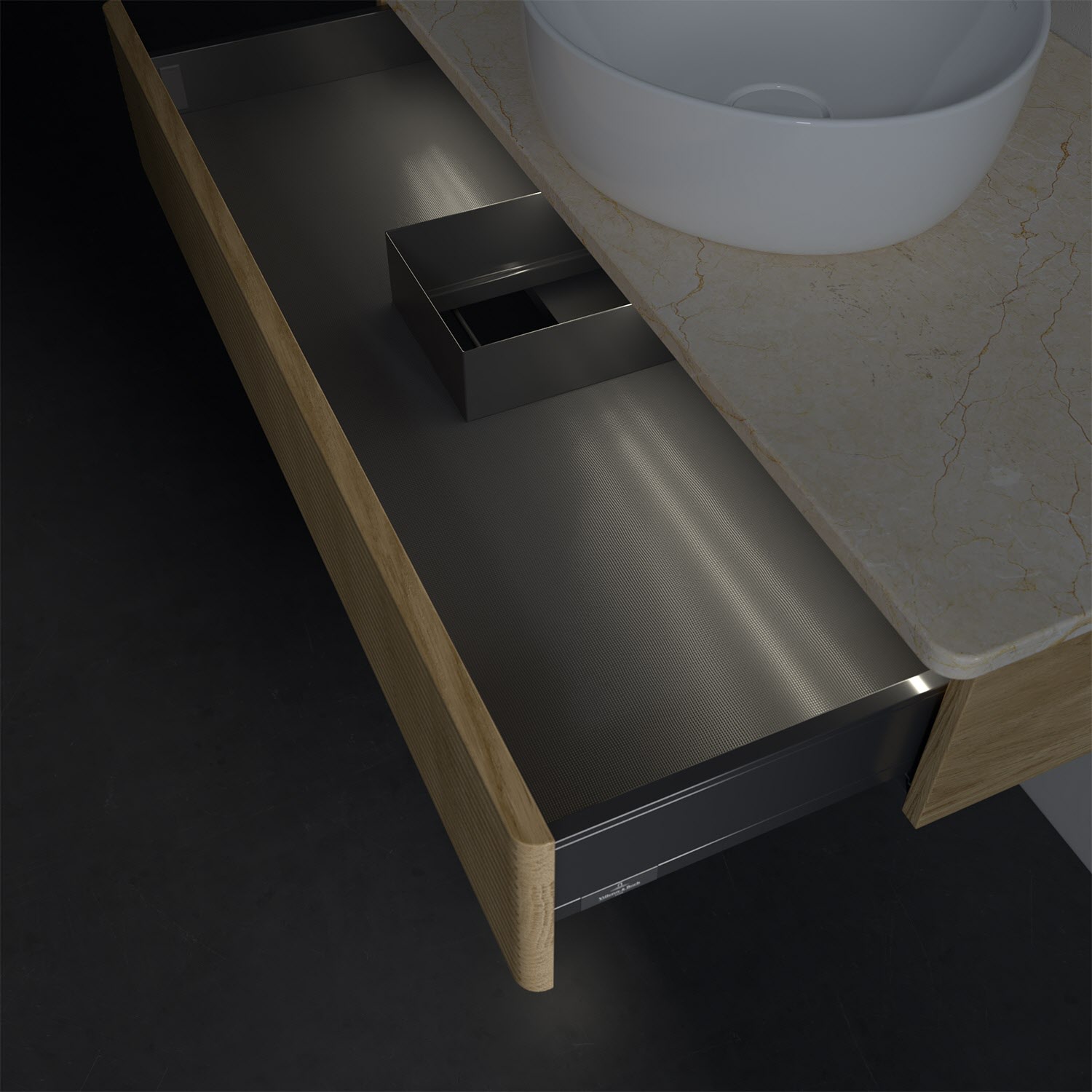 Villeroy & Boch Antao Waschbeckenunterschrank, 100 x 19 cm, 1 Auszug mit LED-Licht, Front mit Struktur, ohne Hahnloch
