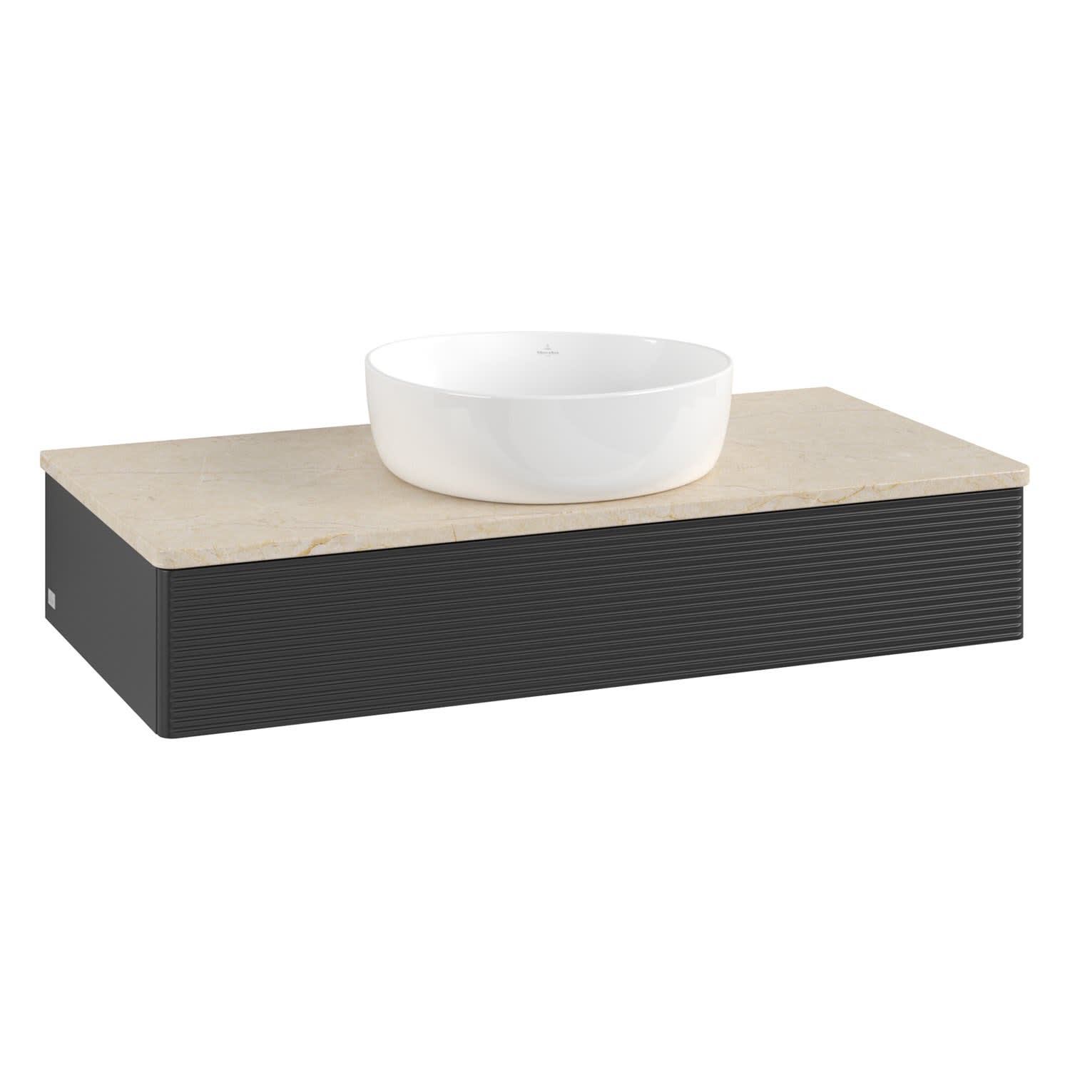 Villeroy & Boch Antao Waschbeckenunterschrank, 100 x 19 cm, 1 Auszug mit LED-Licht, Front mit Struktur, ohne Hahnloch
