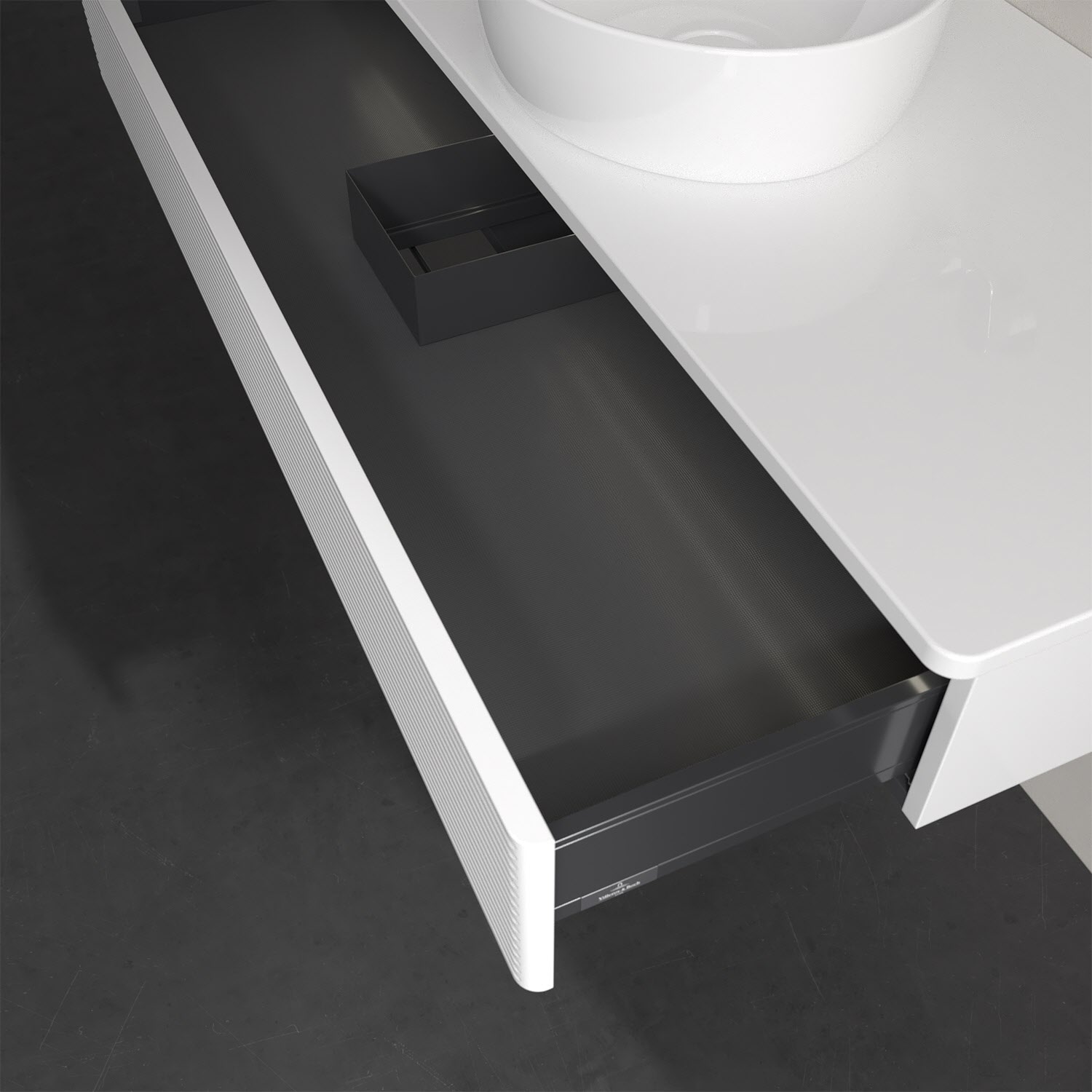 - kein Umfallen oder Verrutschen von Pflegeprodukten in den Schubladen dank rutschhemmendem Boden