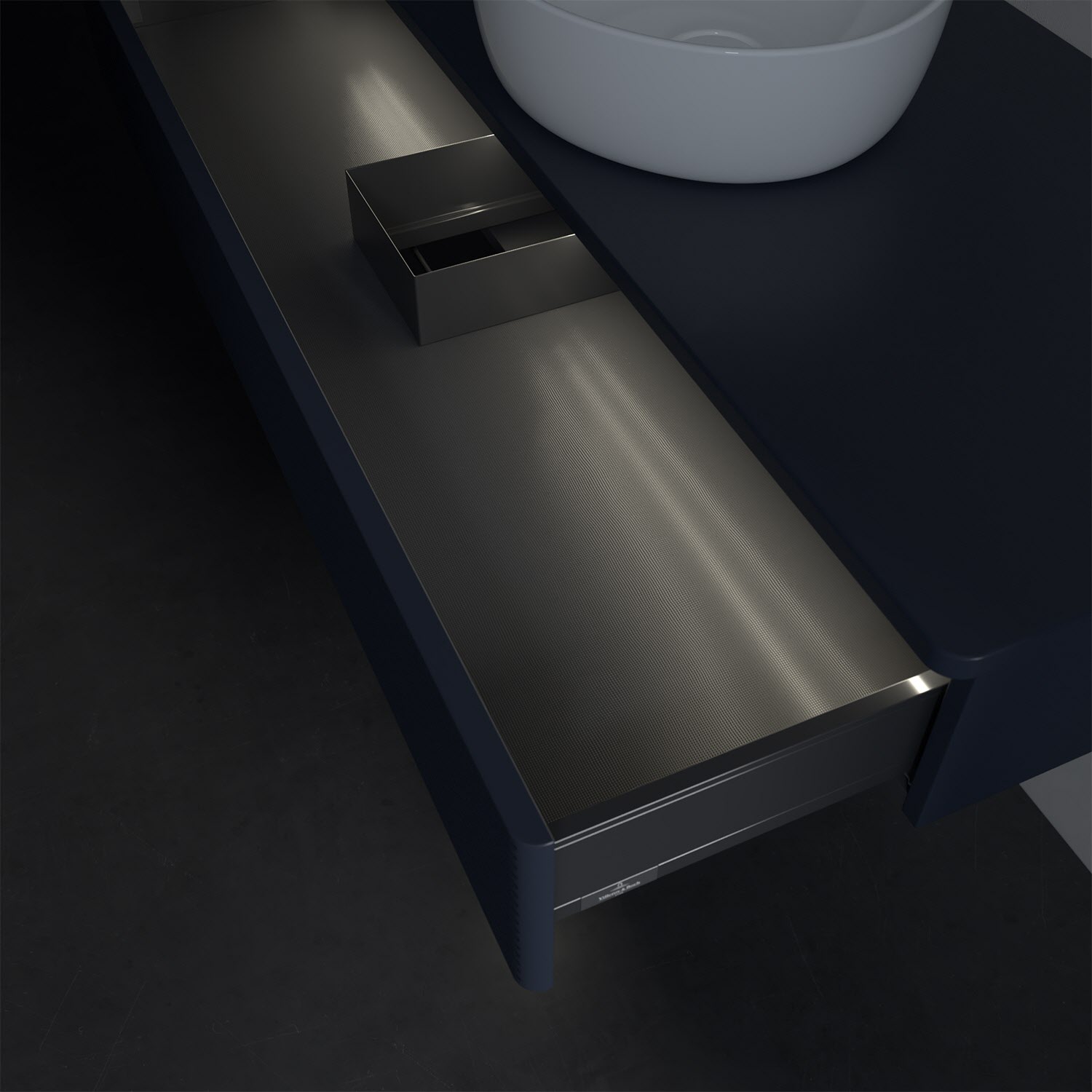 Villeroy & Boch Antao Waschbeckenunterschrank, 120 x 19 cm, 1 Auszug mit LED-Licht, Front mit Struktur, ohne Hahnloch, für Waschtisch mittig