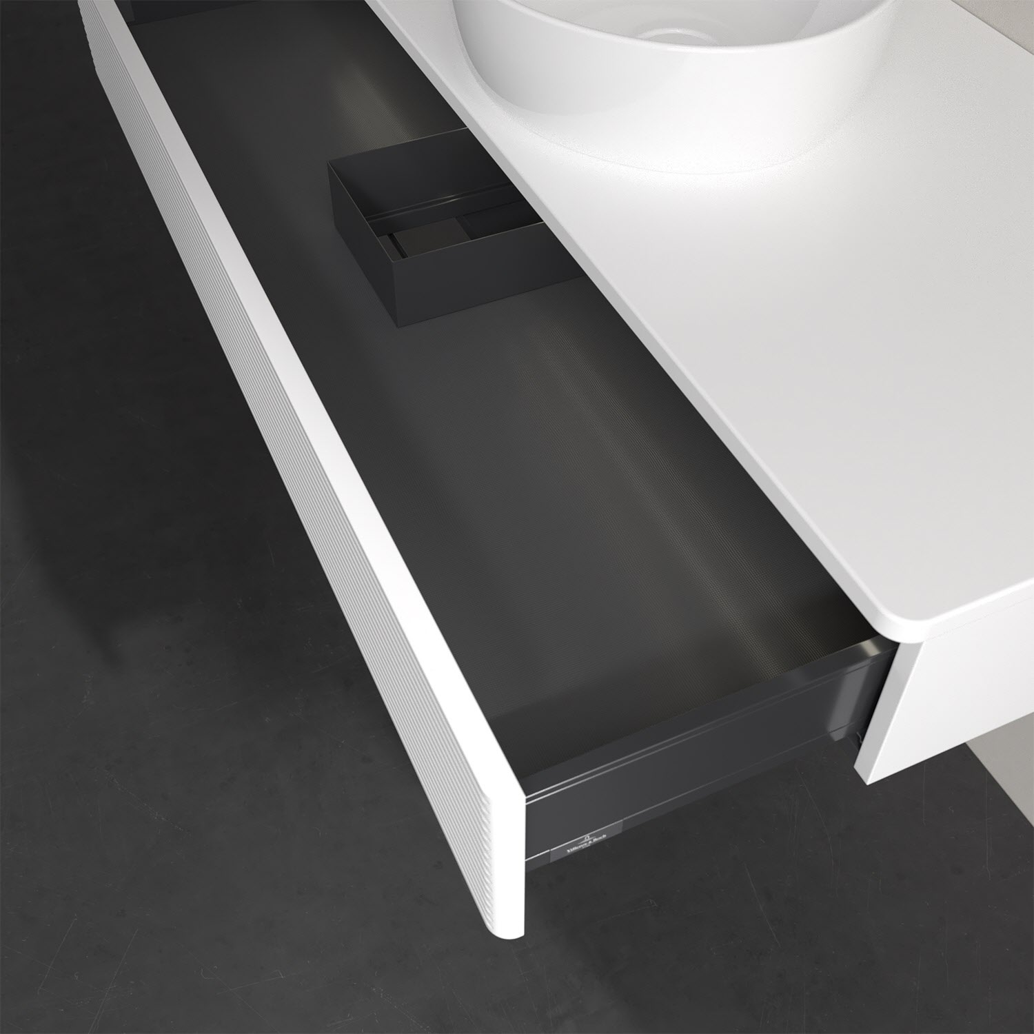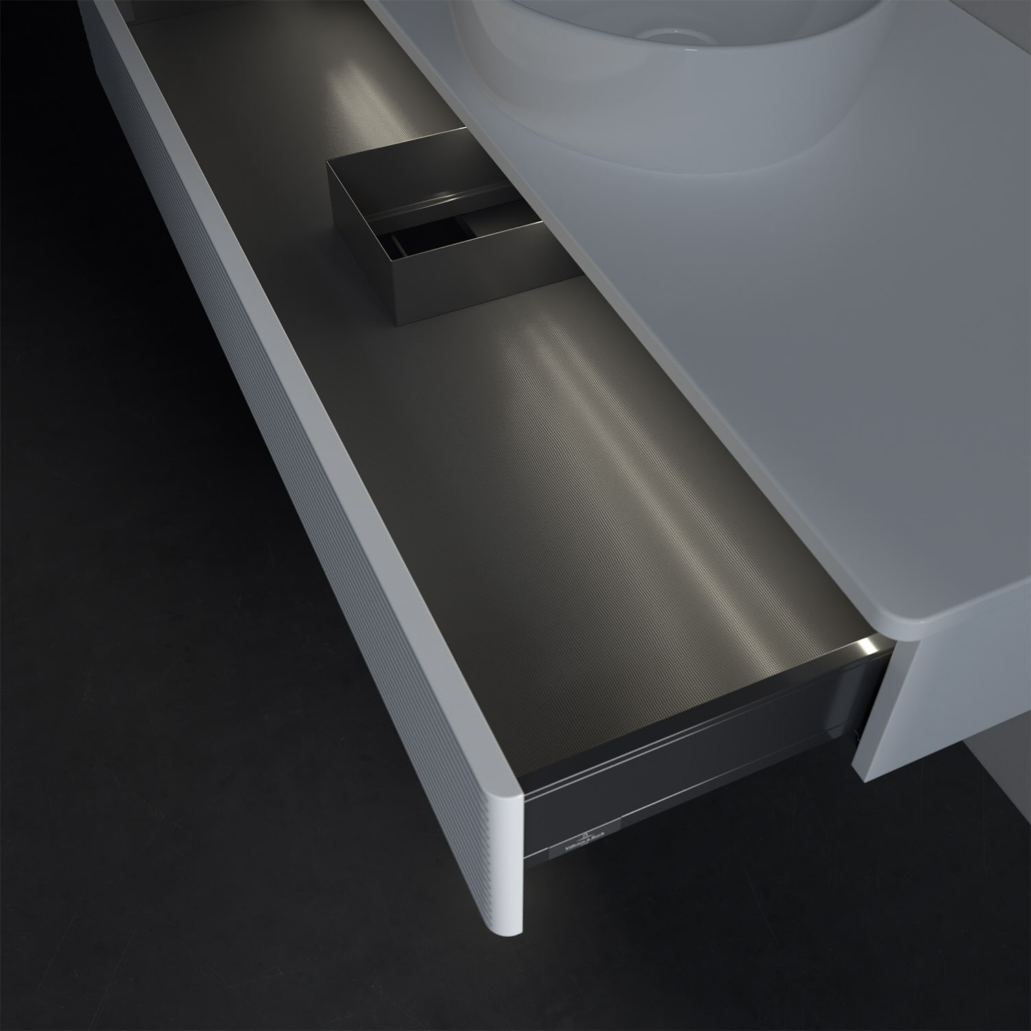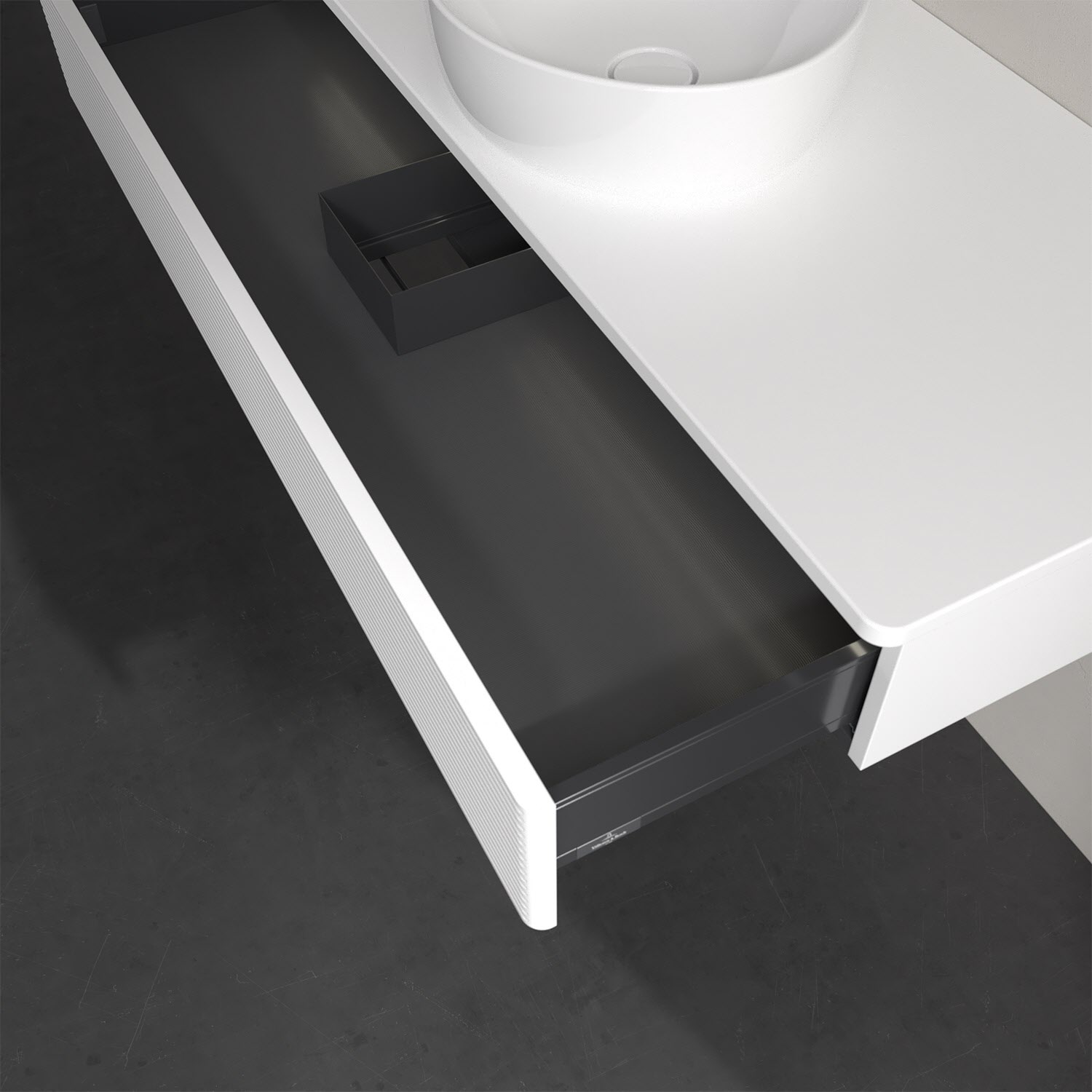 Villeroy & Boch Antao Waschbeckenunterschrank, 120 x 19 cm, 1 Auszug mit LED-Licht, Front mit Struktur, ohne Hahnloch, für Waschtisch mittig