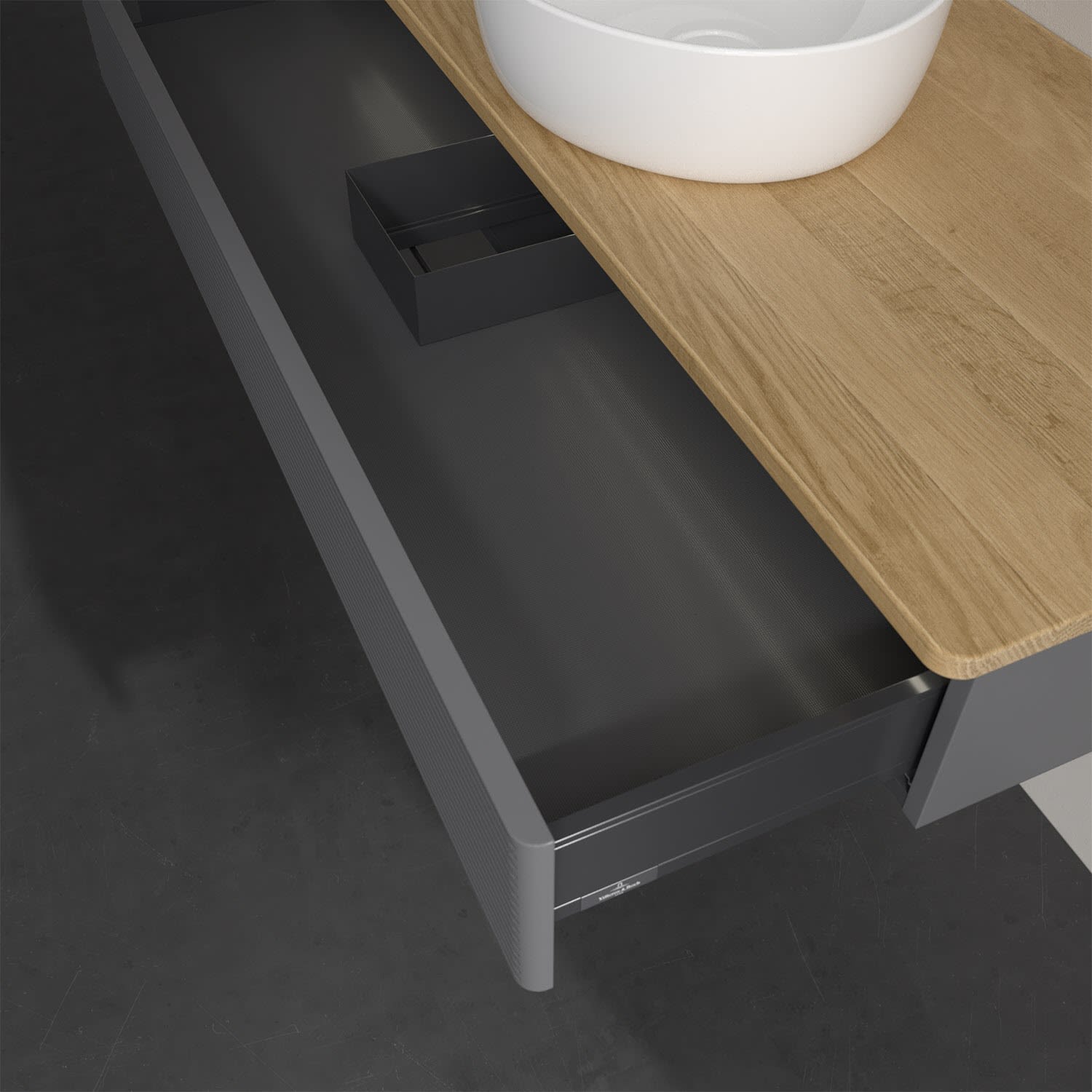 Villeroy & Boch Antao Waschbeckenunterschrank, 120 x 19 cm, 1 Auszug mit LED-Licht, Front mit Struktur, ohne Hahnloch, für Waschtisch mittig