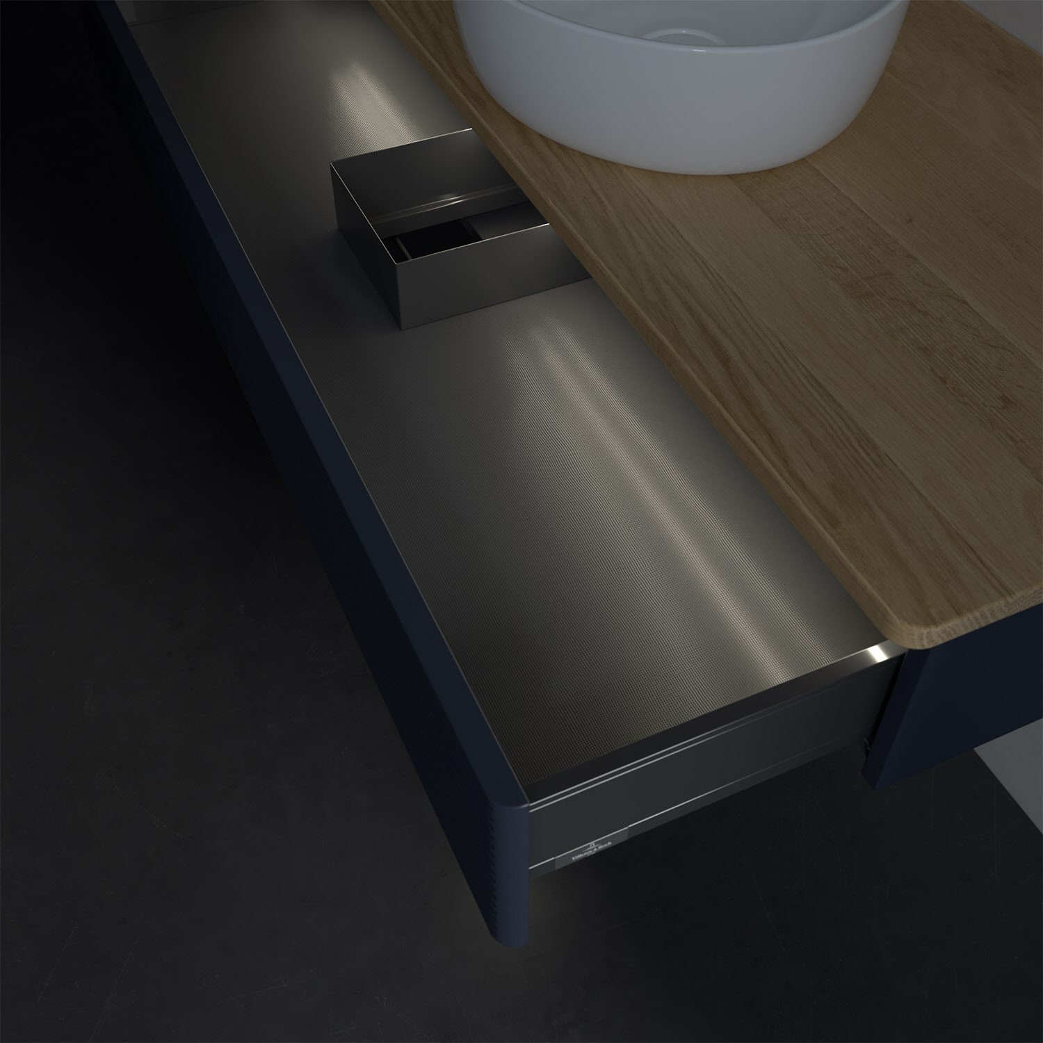 - in Schublade integrierte LED-Leiste mit warmweißem Licht zur Beleuchtung des Innenlebens