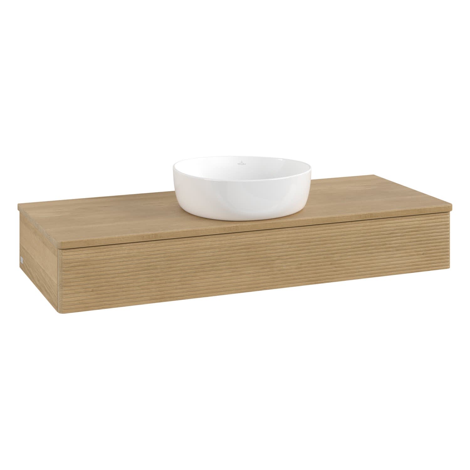 Villeroy & Boch Antao Waschbeckenunterschrank, 120 x 19 cm, 1 Auszug mit LED-Licht, Front mit Struktur, ohne Hahnloch, für Waschtisch mittig