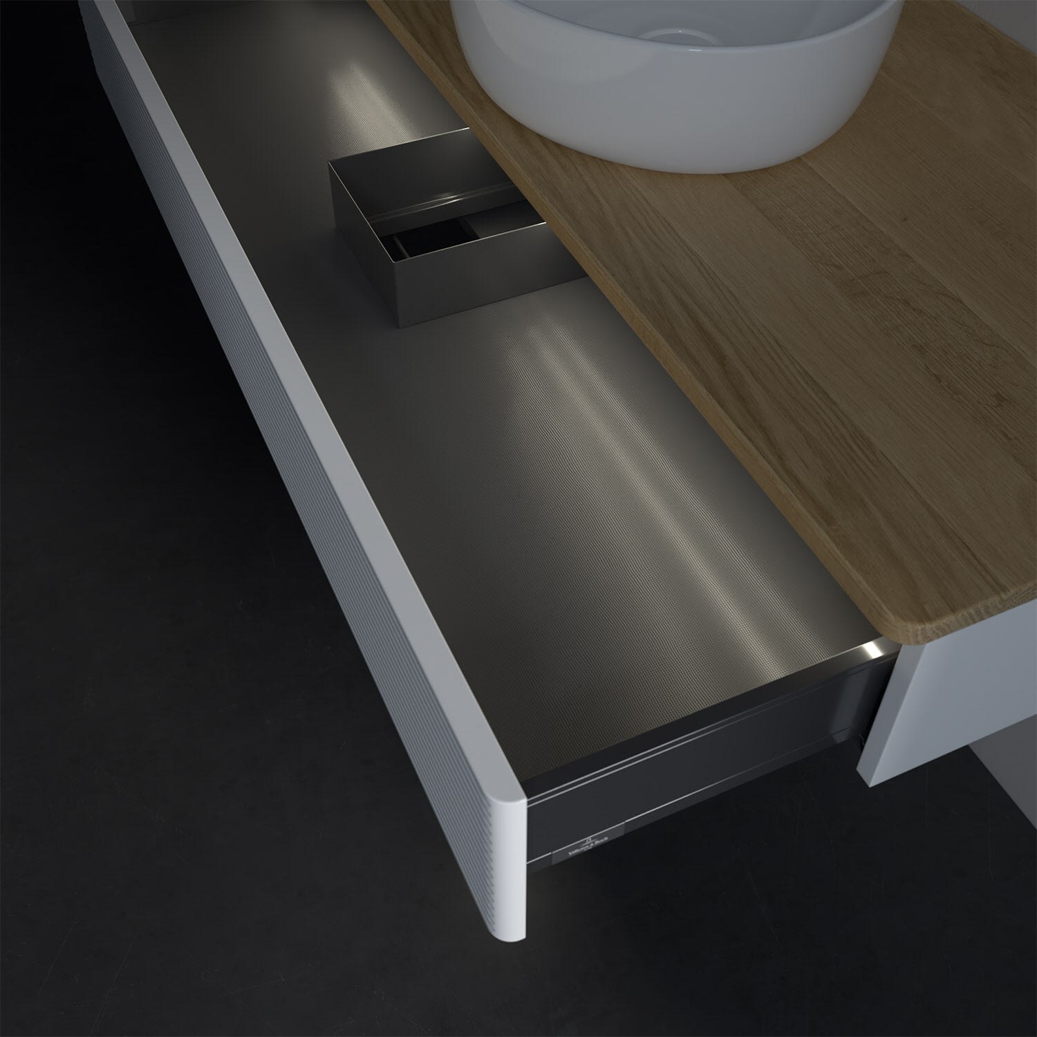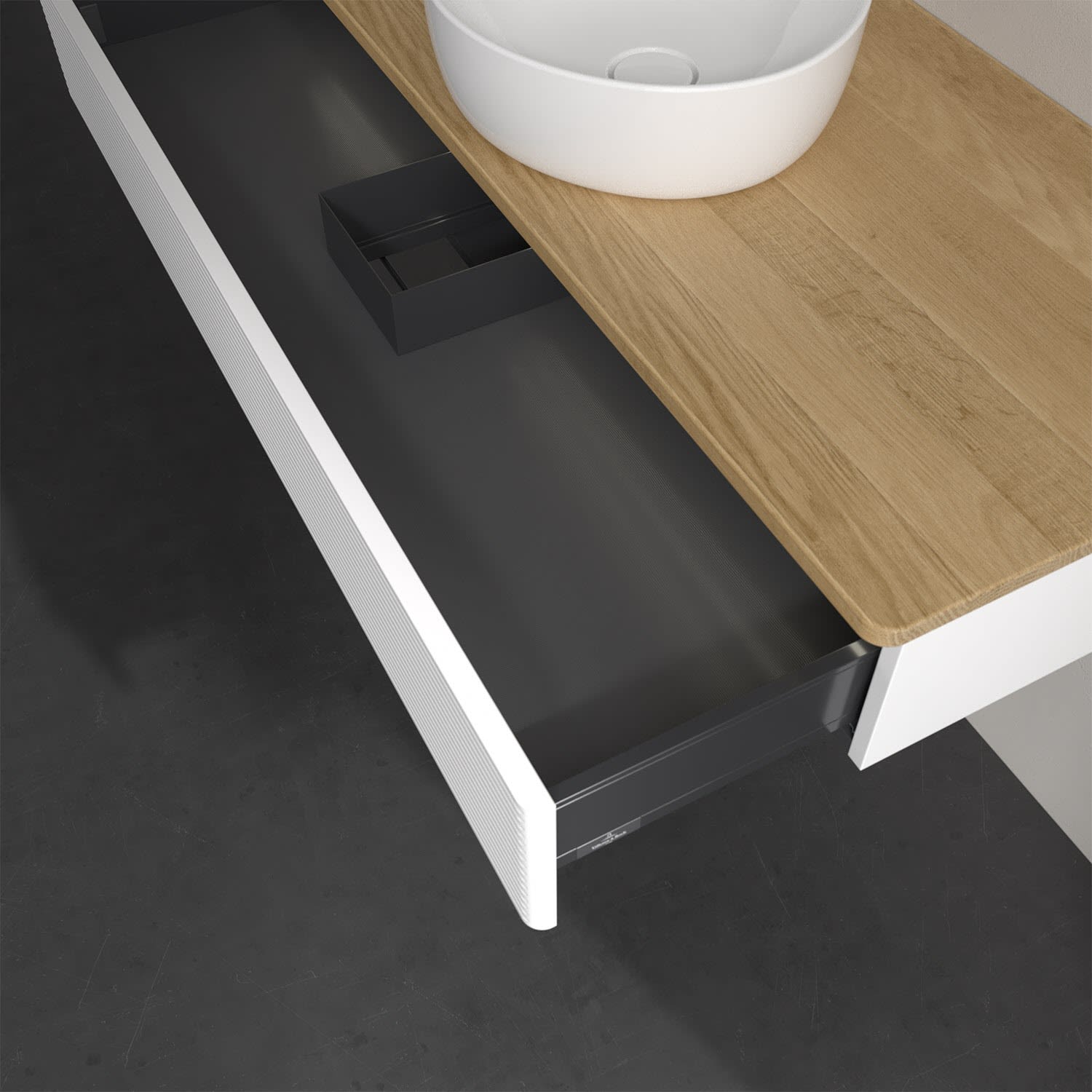 Villeroy & Boch Antao Waschbeckenunterschrank, 120 x 19 cm, 1 Auszug mit LED-Licht, Front mit Struktur, ohne Hahnloch, für Waschtisch mittig