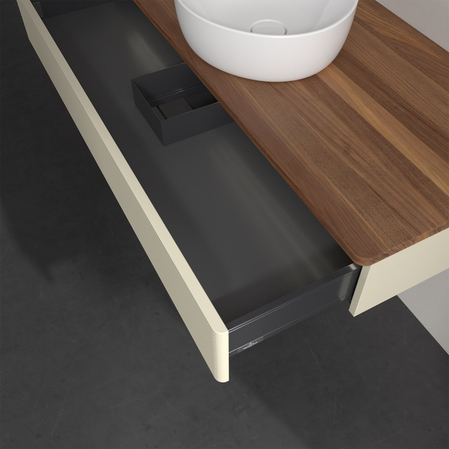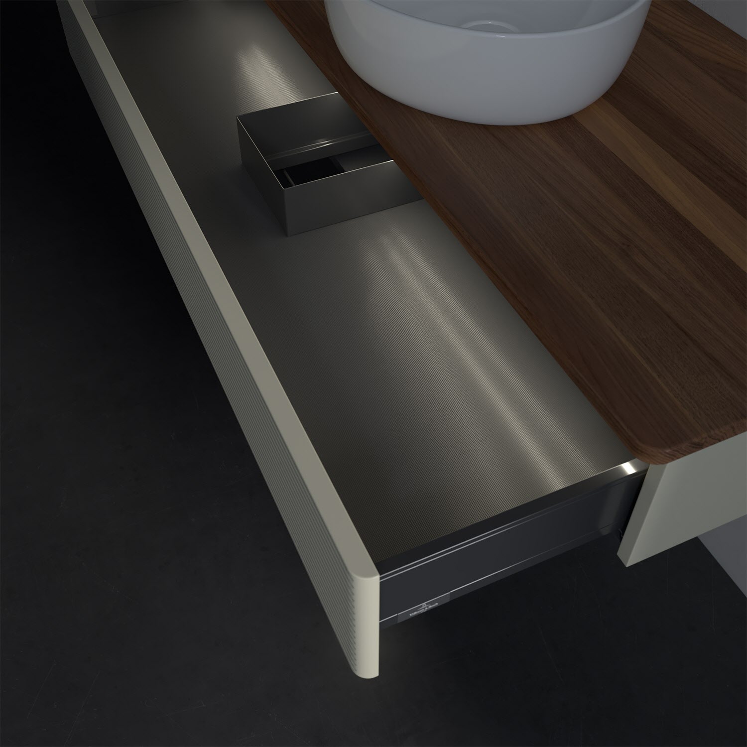 Villeroy & Boch Antao Waschbeckenunterschrank, 120 x 19 cm, 1 Auszug mit LED-Licht, Front mit Struktur, ohne Hahnloch, für Waschtisch mittig